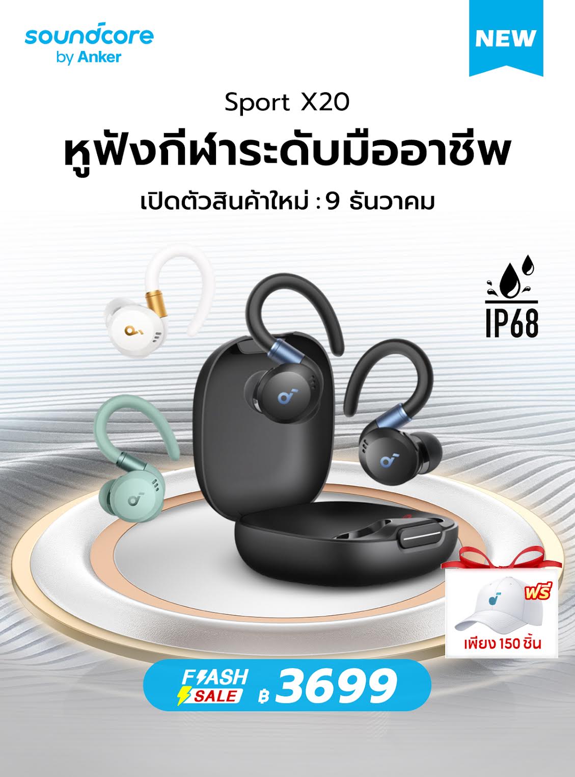 Sport X20 เหมาะสำหรับการออกกำลังกาย มาพร้อมกับหูฟังที่ปรับได้ การตัดเสียงรบกวนขั้นสูง และเทคโนโลยี SweatGuard ที่ทนต่อเหงื่อและฝุ่น ระยะเวลาการใช้งานสูงสุด 12 ชั่วโมงต่อการชาร์จหนึ่งครั้ง (48 ชั่วโมงเมื่อใช้ร่วมกับเคสชาร์จ) ออกแบบมาเพื่อให้เข้ากับไลฟ์สไตล์ที่กระฉับกระเฉงของคุณ Sport X20 จำหน่ายในสีขาว และสีเขียวในวันที่ 9 ธันวาคม บน Shopee และร้านค้าตัวแทนจำหน่ายหลัก ราคา 3,699 บาท (สีดำจะพร้อมจำหน่ายภายในกลางเดือนธันวาคม)