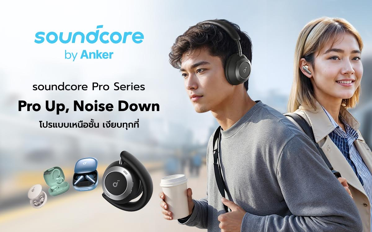 Soundcore แบรนด์เครื่องเสียงระดับพรีเมียมในเครือของ Anker Innovations มีความยินดีที่จะประกาศเปิดตัวผลิตภัณฑ์ใหม่ในชื่อ Pro Series ซึ่งเป็นกลุ่มผลิตภัณฑ์หูฟังและเอียร์บัดที่ออกแบบมาเป็นพิเศษเพื่อยกระดับชีวิตประจำวันของคนเมือง ด้วยสโลแกน “โปรขั้นเทพ ตัดทุกเสียงรบกวน” (Pro Up, Noise Down) กลุ่มผลิตภัณฑ์นี้มอบการตัดเสียงรบกวนที่ยอดเยี่ยม ระบบเสียงคุณภาพสูง พร้อมกับความสะดวกสบายที่ไม่มีใครเทียบ ช่วยให้ผู้ใช้งานสามารถโฟกัสไปยังสิ่งที่ตั้งใจทำอยู่ได้อย่างแท้จริง ไม่ว่าจะทำงาน ออกกำลังกาย หรือพักผ่อน Pro Series นี้ ได้รับการออกแบบมาเพื่อช่วยให้มืออาชีพอย่างคุณได้ทำกิจกรรมต่าง ๆ โดยปราศจากเสียงรบกวน