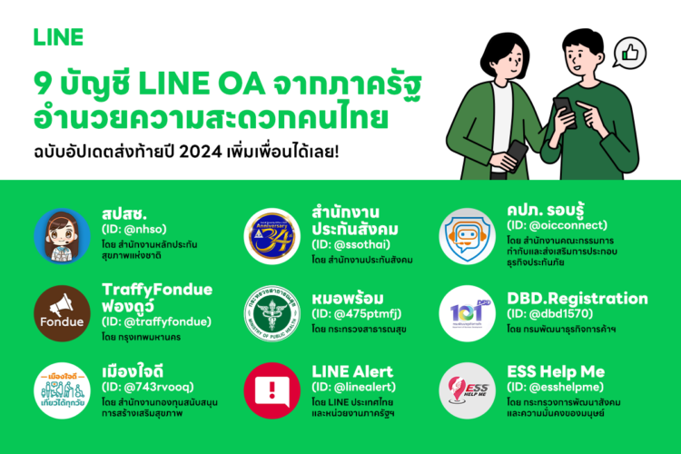 รวม 9 บัญชี LINE OA บริการจากภาครัฐเพื่อคนไทย ฉบับอัปเดตส่งท้ายปี 2024 เพิ่มเพื่อนได้เลย!