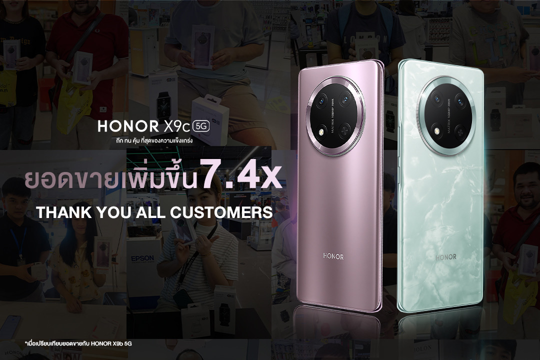 ออเนอร์ (HONOR)ผู้ให้บริการอุปกรณ์อัจฉริยะชั้นนำระดับโลก ประกาศความสำเร็จสมาร์ตโฟน HONOR X9c Series ซึ่งสร้างปรากฏการณ์ใหม่ในตลาดสมาร์ตโฟน ด้วยยอดขายที่เติบโตอย่างก้าวกระโดดทะลุเป้าสูงสุดถึง 7.4 เท่า นับตั้งแต่เริ่มวางจำหน่ายและเปิดให้พรีออเดอร์ในช่องทางอีคอมเมิร์ซชั้นนำครบทุกแพลตฟอร์ม โดยความสำเร็จครั้งนี้สะท้อนให้เห็นถึงความเชื่อมั่นของลูกค้าที่มีต่อคุณภาพผลิตภัณฑ์และนวัตกรรมล้ำสมัยของ HONOR