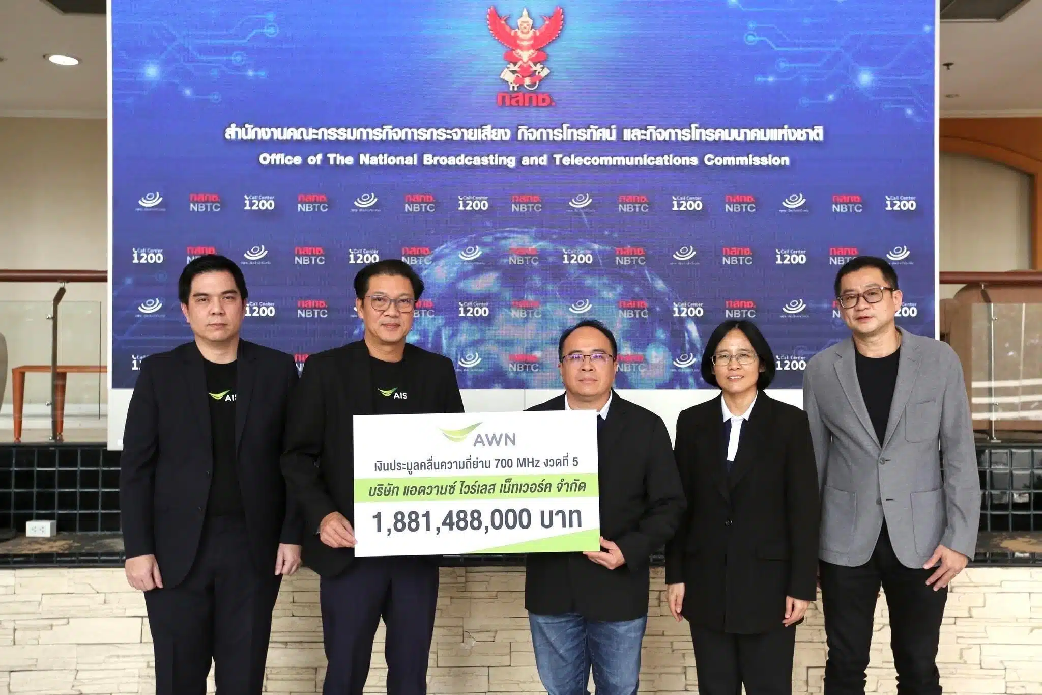 บริษัท แอดวานซ์ ไวร์เลส เน็ทเวอร์ค จำกัด (AWN) บริษัทในกลุ่ม AIS เข้าชำระค่าคลื่นความถี่ 700 MHz งวดที่ 5 เป็นเงิน 1,881,488,000 บาท (หนึ่งพันแปดร้อยแปดสิบเอ็ดล้านสี่แสนแปดหมื่นแปดพันบาท) ให้แก่ กสทช. โดยมี นายสุทธิศักดิ์ ตันตะโยธิน รองเลขาธิการคณะกรรมการกิจการกระจายเสียง กิจการโทรทัศน์ และกิจการโทรคมนาคมแห่งชาติ เป็นผู้แทนรับมอบ เพื่อนำส่งเงินเป็นรายได้ของแผ่นดินในการพัฒนากิจการโทรคมนาคมของประเทศต่อไป