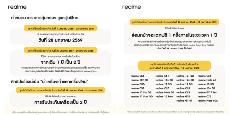 realme ประกาศมาตราการคุ้มครองผู้บริโภค ดังต่อไปนี้