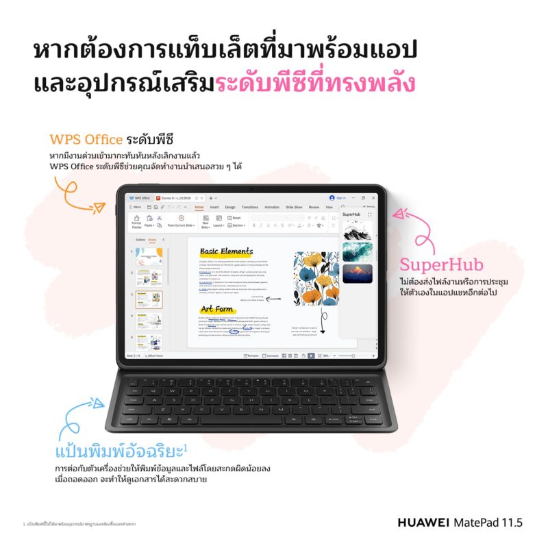 ·      WPS PC-Level – งานเอกสารระดับมืออาชีพ ไม่ต่างจากพีซีหากคุณต้องใช้พีซีเพราะต้องทำงานเอกสารหรือพรีเซนเทชัน ตอนนี้ HUAWEI MatePad 11.5 New สามารถทดแทนพีซีได้แล้ว ด้วย PC-Level WPS Office ที่ให้ประสบการณ์การใช้งานเหมือนคอมพิวเตอร์จริง