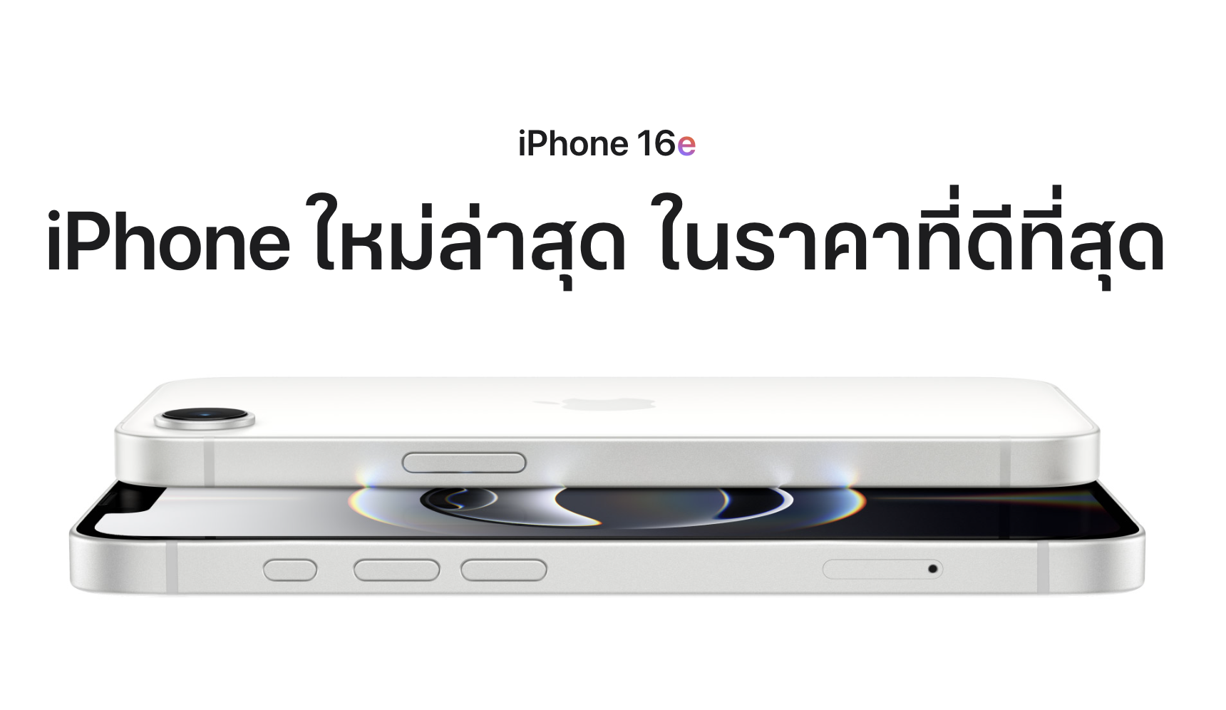 - ลูกค้าที่ซื้อ iPhone 16e สามารถรับสิทธิ์ใช้งาน Apple Music, Apple TV+ และ Apple Arcade ฟรี 3 เดือนเมื่อสมัครสมาชิกใหม่ ข้อเสนอและบริการที่มีแตกต่างกันตามภูมิภาค ดูรายละเอียดที่ apple.com/th/promo