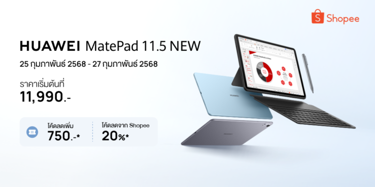 ห้ามพลาด! กับ HUAWEI MatePad 11.5 New แท็บเล็ตรุ่นใหม่ที่มาพร้อมกับหน้าจอขนาด 11.5 นิ้ว โดดเด่นด้วยฟังก์ชันการทำงานครบจบเหมือนพีซี ทั้งยังมีโปรแกรมทำงานอย่าง WPS Office ที่มีทั้ง Word, PowerPoint และ Excel ใช้งานได้ครบทุกฟังก์ชัน ทั้งยังหมดห่วงเรื่องสายตาด้วยเทคโนโลยี PaperMatte ป้องกันแสงสะท้อนอย่างยอดเยี่ยม ดีไซน์บางเบา พกพาสะดวก มัดรวมทั้งหมดนี้มาให้ครบ จบในราคาเพียง 11,990 บาทเท่านั้น คุ้มยิ่งกว่าด้วยโปรโมชันสุดพิเศษตั้งแต่วันที่ วันที่ 25 กุมภาพันธ์ 2568 – 27 กุมภาพันธ์ 2568 ผู้ที่สั่งซื้อ HUAWEI MatePad 11.5 New ที่ Shopee จะได้รับดีลพิเศษเพิ่มเติมดังนี้: