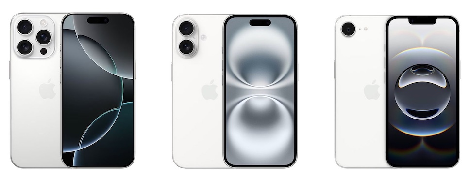 iPhone 16e มีกล้องด้านหลังเพียงตัวเดียว จึงใช้วอลเปเปอร์รูปทรงกลมเพียงตัวเดียว ขณะที่วอลเปเปอร์ของ iPhone 16 มีรูปทรงกลม 2 วง และ iPhone 16 Pro มีรูปทรงกลม 3 วงซ้อนกัน