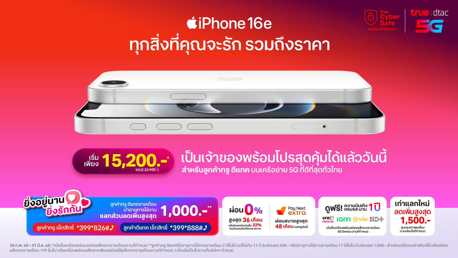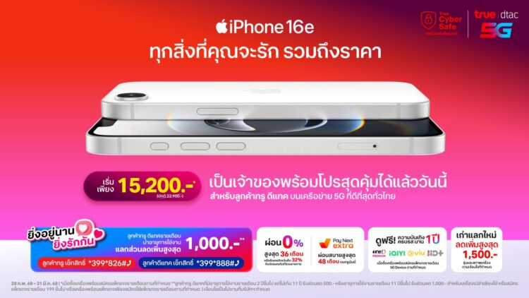 สามารถดูรายละเอียดราคาและการวางจำหน่ายได้ที่ https://true.th/devices/promotion/iphone-16e