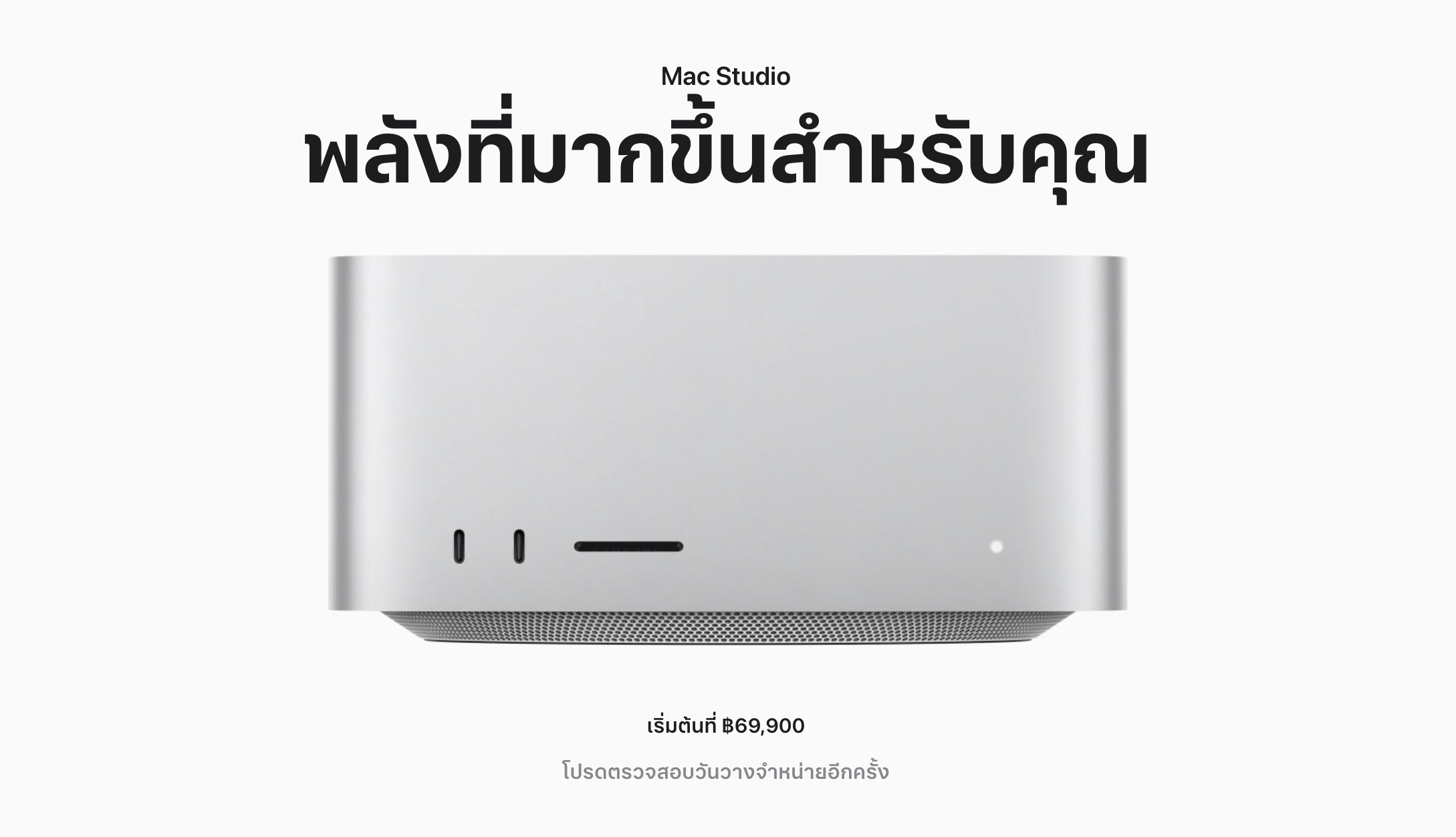 - Mac Studio ราคาเริ่มต้นที่ 69,900 บาท และมีราคาส่งเสริมการศึกษาเริ่มต้นที่ 62,900 บาท ดูตัวเลือกในการปรับแต่งตามสั่งได้ที่ apple.com/th/store