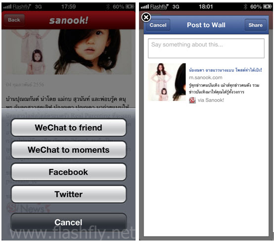 นอกจากนี้ยังสามารถแชร์ข้อมูลข่าวสารต่างๆไปยัง Social Media ต่างๆได้อย่างง่ายดายไม่ว่าจะเป็น Facebook , Twitter หรือ WeChat ได้อีกด้วย