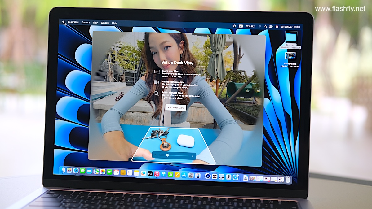 กล้องหน้าของ MacBook Air รุ่นใหม่ ยังรองรับฟีเจอร์ Center Stage ช่วยจัดให้ผู้ใช้งานอยู่กลางเฟรมเสมอในขณะที่เคลื่อนไหวไปรอบๆ จึงเหมาะอย่างยิ่งสำหรับการพูดคุยกับเพื่อนและครอบครัวผ่าน FaceTime หรือเข้าร่วมการประชุม อีกทั้งยังรองรับ Desk View ที่แสดงให้เห็นทั้งตัวผู้ใช้และมุมมองด้านบนของโต๊ะพร้อมกัน ทำให้การโทรแบบวิดีโอน่าสนใจยิ่งขึ้นสำหรับคนที่ต้องการอวดโปรเจ็กต์ DIY ล่าสุด หรือนำเสนองานต้นแบบในที่ทำงาน