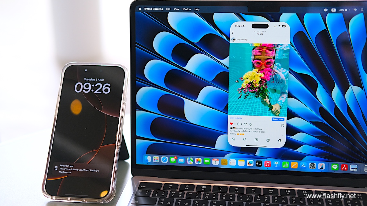 ฟีเจอร์ใหม่ iPhone Mirroring หรือการสะท้อนหน้าจอ iPhone เพื่อดูและใช้งานสิ่งต่างๆที่อยู่บน iPhone ไปแสดงบนเครื่อง Mac ที่สะดวกและง่ายดายยิ่งกว่า AirDrop ไม่ว่าจะเป็นการคัดลอกข้อความจาก iPhone มาวางบน Mac โดยไม่ต้องเอื้อมมือไปหยิบ iPhone รวมถึงลากแล้ววางไฟล์ระหว่างอุปกรณ์ได้เลยง่ายๆ โดยขณะใช้งาน iPhone ก็จะถูกล็อคหน้าจอไว้เพื่อความเป็นส่วนตัวอีกด้วย เพิ่มความสะดวกในการใช้งานร่วมกันอย่างมากอีกด้วย