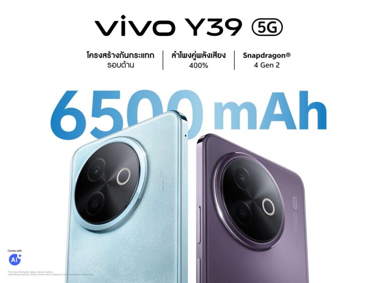 vivo แบรนด์สมาร์ตโฟนชั้นนำระดับโลก เสริมทัพไลน์อัปความคุ้มค่าด้วยการเปิดตัว Y39 5G สมาร์ตโฟนน้องเล็กสายสตรองรุ่นล่าสุดจากตระกูล Y Series ที่มาพร้อมสโลแกน “เอาอยู่ทุกความท้าทาย” ด้วยสเปกสุดแกร่งอย่างแบตเตอรี่ BlueVolt ความจุสูง 6500mAh และโครงสร้างกันกระแทกรอบด้าน พร้อมสแตนบายใช้งานได้ทุกสถานการณ์ตลอดวัน นอกจากนี้ยังมาพร้อมลำโพงคู่บูสต์พลังเสียงสูงสุด 400% จะรับชมความบันเทิงในสภาพแวดล้อมไหนก็เอาอยู่ ทั้งหมดนี้ทำงานบนขุมพลัง Snapdragon® 4 Gen 2 พร้อมความจุสูง 256GB รับประกันประสิทธิภาพและความเร็วแรงเหนือระดับ วางจำหน่ายแล้วตั้งแต่วันที่ 28 มีนาคม 2568 ในราคาคุ้มค่า เพียง 7,999 บาท