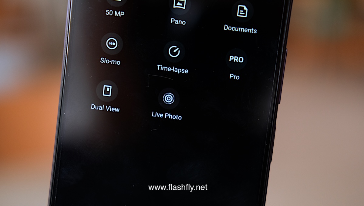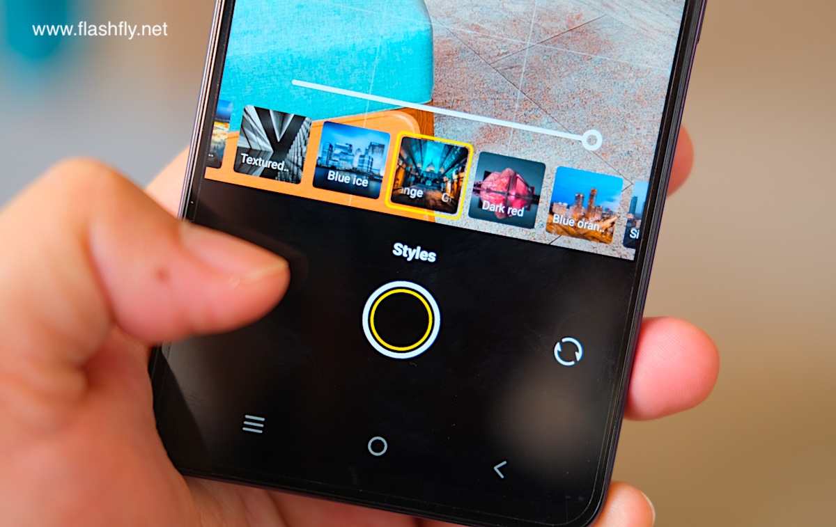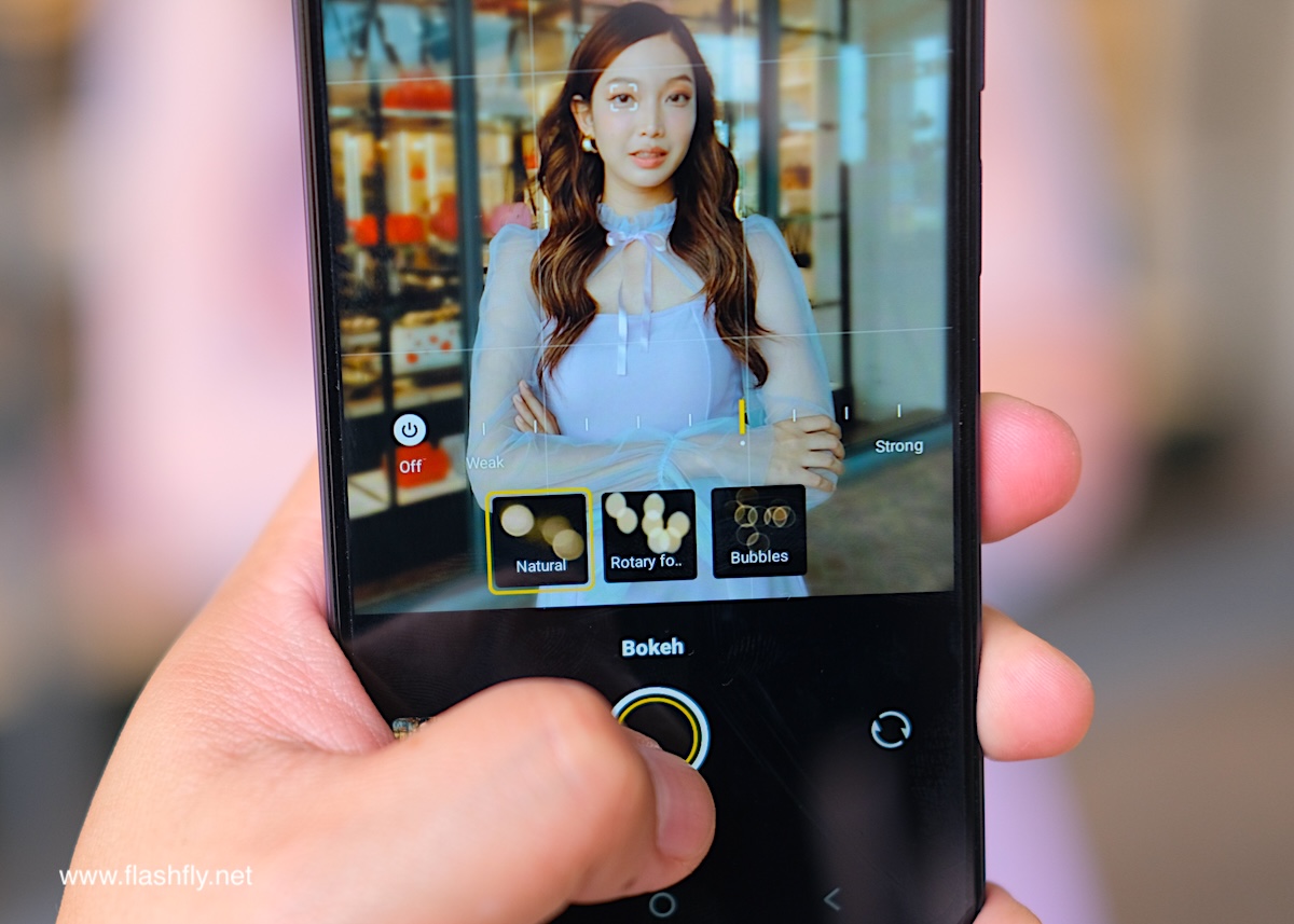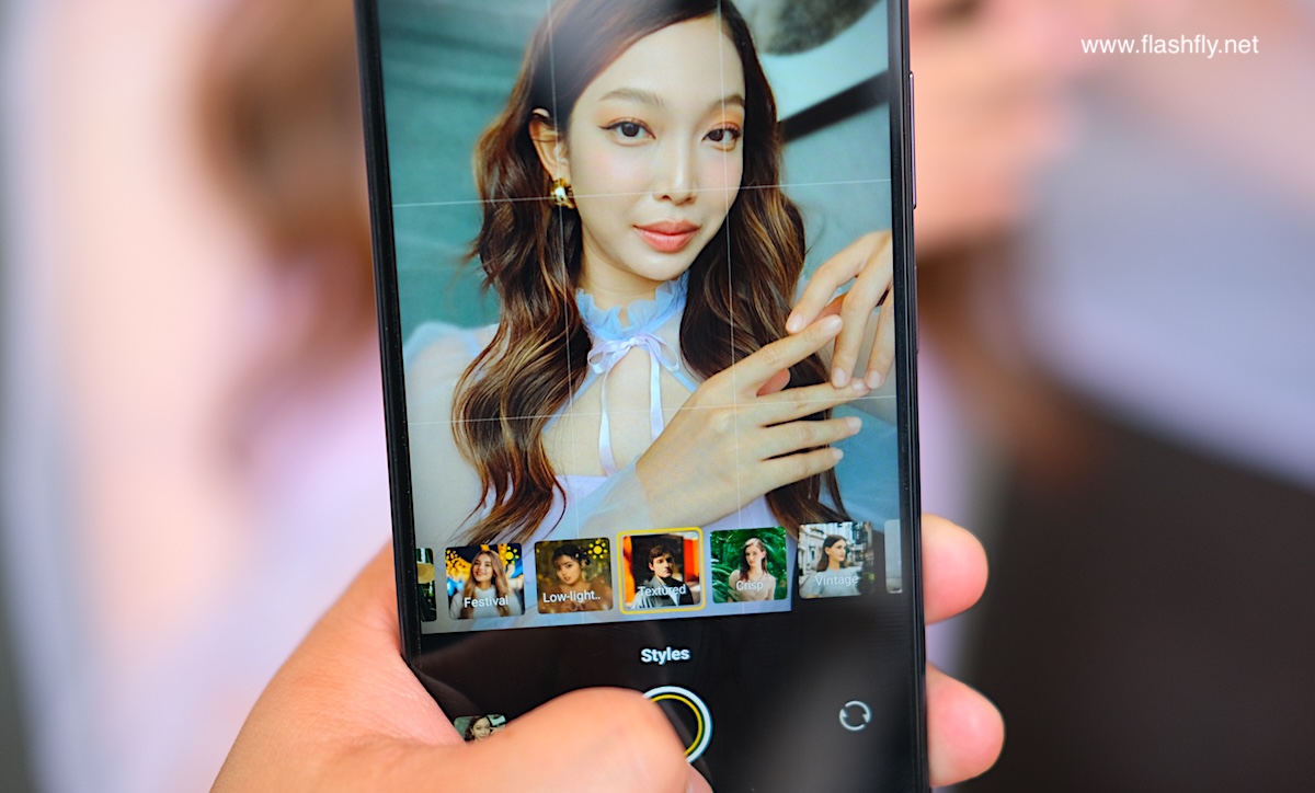 โหมด Portrait มีฟีเจอร์ Styles ให้เลือกหลายแบบ แต่ละแบบจะทำงานร่วมกับแฟลช LED ด้านหลัง เพื่อให้แสงสว่างที่แตกต่างกันตาม Styles ที่เลือก ถัดลงมาเป็นฟีเจอร์ Beauty สำหรับปรับใบหน้าให้ดูดีขึ้น ไม่ว่าจะเป็นความเรียบเนียนของผิวหน้า โทนสี ความขาวกระจ่างใส และไอคอนล่างสุดสำหรับปรับค่า F เพื่อละลายฉากหลัง พร้อมเอฟเฟกต์ Bokeh ละลายฉากหลัง มีให้เลือก 3 แบบ ได้แก่ Natural, Rotary focus และ Bubbles
