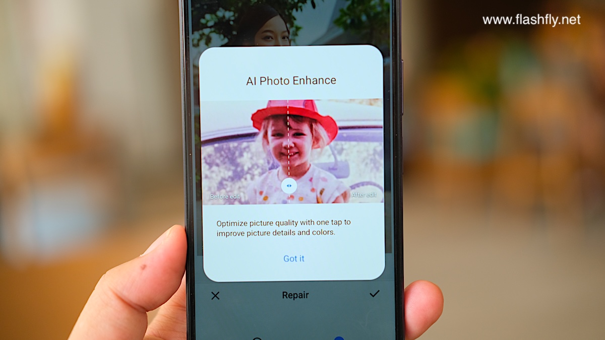 AI Photo Enhance ช่วยปรับปรุงและเพิ่มความคมชัดของภาพถ่าย พร้อมฟื้นฟูรายละเอียดที่สำคัญไม่ว่าจะเป็นดวงตา ปาก และ สีสัน เพื่อทำให้ภาพถ่ายมีความสมบูรณ์ยิ่งขึ้น