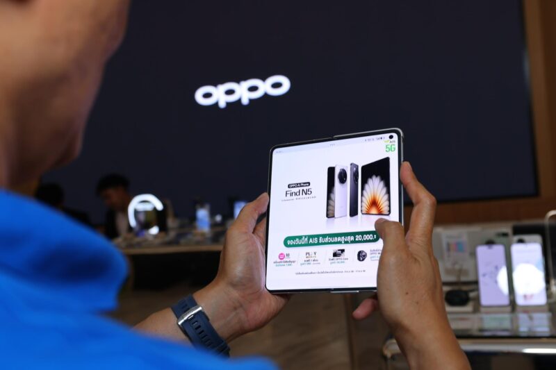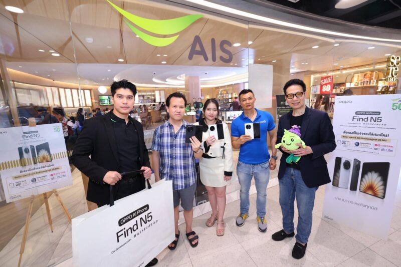 AIS 5G พร้อมส่งมอบประสบการณ์เร็ว แรง ยิ่งกว่าใครบนเครือข่ายอัจฉริยะ กับ OPPO Find N5 สมาร์ทโฟนจอพับที่บางที่สุด มอบความพิเศษให้ลูกค้ากลุ่มแรกได้เป็นเจ้าของสัมผัสความเบา บาง ก่อนใคร ลูกค้าที่สนใจสามารถจองเป็นเจ้าของ OPPO Find N5 พร้อมรับโปรโมชันสุดคุ้มจาก AIS ทั้งซื้อเครื่องพร้อมแพ็กเกจรับส่วนลดสูงสุด 20,000 บาท หรือ ใช้เอไอเอสพอยท์ 10 คะแนน แลกรับส่วนลดสูงสุด 7,000 บาท เมื่อซื้อเครื่องเปล่าไม่ติดสัญญา