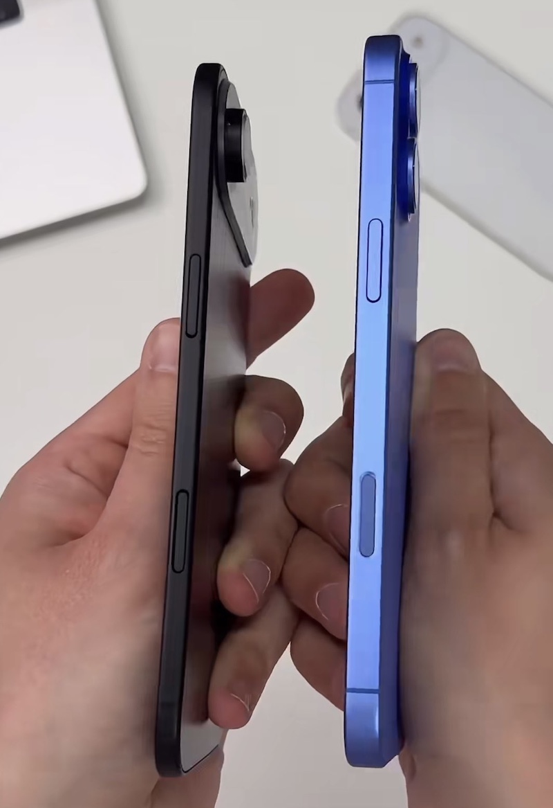 iPhone 17 Air ถูกลือว่าจะมีความบางประมาณ 5.5 มิลลิเมตร (ไม่รวมความนูนของโมดูลกล้องหลัง) ขณะที่ iPhone 16 Plus มีความบาง 7.8 มิลลิเมตร