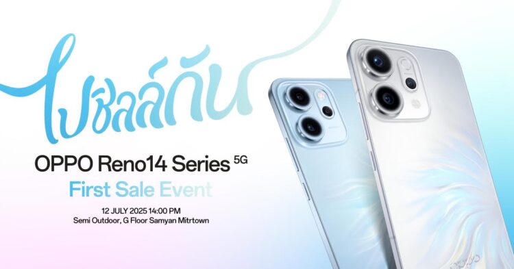เตรียมตัวให้พร้อมแล้วมาชิลล์ไปด้วยกันในงาน “ไปชิลล์กัน OPPO Reno14 Series 5G First Sale Event” ให้คุณมาถ่ายพอร์ตเทรตสุดชิคด้วย AI แฟลช และ พอร์ตเทรตซูมได้ 3.5 เท่า พร้อมกิจกรรมที่จะให้คุณได้มาสัมผัสประสบการณ์ท้าลองกับ OPPO Reno14 Series 5G ตอบโจทย์สายเล่นเกมมันส์ทุกแมตช์ พิเศษใกล้ชิดติดขอบเวทีไปกับคู่นักแสดงสุดฮอต เพิร์ธ-แซนต้า และนักแสดงดาวรุ่ง นัท ศุภณัฐ ในวันที่ 12 กรกฎาคมนี้ ณ ลานหน้า KFC สามย่านมิตรทาวน์