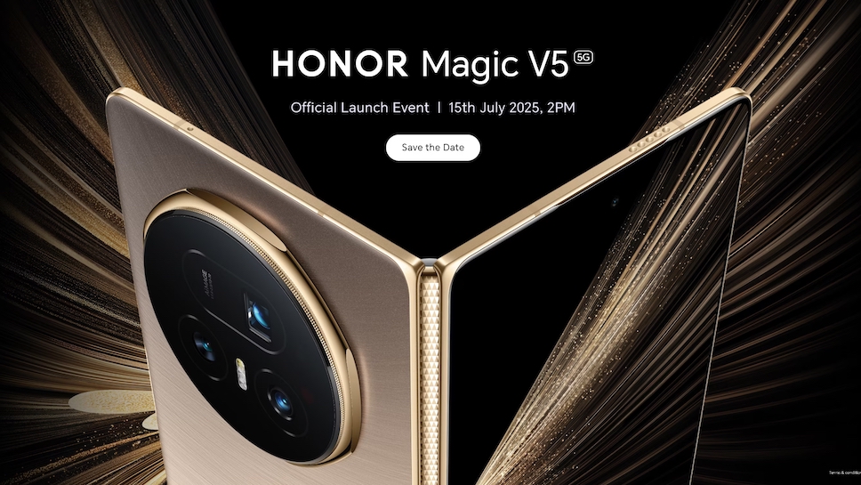 HONOR Magic V5 ประกาศออกมาแล้วว่าจะเปิดตัวในมาเลเซีย วันที่ 15 กรกฎาคมนี้ เวลา 14.00 น. ตามเวลาท้องถิ่น โดยชูจุดเด่นที่ความบางเพียง 4.1 มิลลิเมตร เมื่อกางออก ทำให้เป็นสมาร์ตโฟนจอพับได้ที่มีความบางที่สุดในโลก แซงหน้า OPPO Find N5 ที่มีความบาง 4.21 มิลลิเมตร ขณะที่ Galaxy Z Fold7 ยังไม่ได้รับการเปิดตัวทางการ แต่มีข่าวลือว่าจะมีความบาง 4.2 มิลลิเมตร