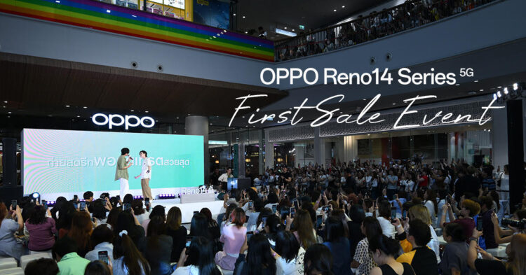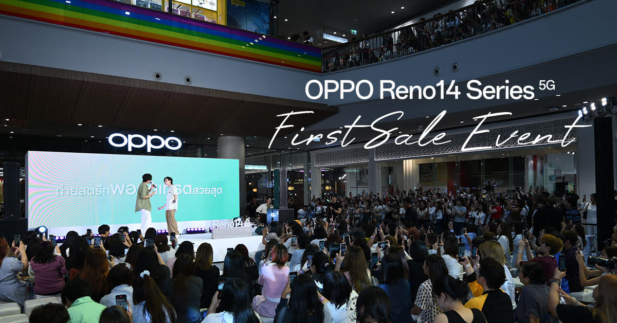 OPPO Reno14 Series 5G ตอกย้ำความแรง อัปเกรดประสบการณ์ The AI Portrait Expert ถ่ายพอร์ตเทรตสวยด้วยการอัปเกรดไปอีกขั้น ตอกย้ำประสิทธิภาพอันทรงพลัง ด้วยการจัดงาน “ไปชิลล์กัน OPPO Reno14 Series 5G | First Sales Event” ชวนชิลล์ไปกับเหล่าดาราศิลปินคนโปรดมากความสามารถ ‘เพิร์ธ-แซนต้า’, ‘นัท ศุภณัฐ’ และ ‘บอนนี่’ มาร่วมสร้างประสบการณ์การถ่ายพอร์ตเทรตสุดชิคด้วย AI แฟลช และ พอร์ตเทรตซูมได้ 3.5 เท่า พร้อมทั้งร่วมสนุกไปกับการ BATTLE ในเกม RoV พร้อมจอยกับมินิคอนเสิร์ตแบบสุดเอ็กซ์คลูซีฟจากศิลปินคนโปรด ที่ ชั้น G Samyan Mitrtown วันที่ 12 กรกฎาคม 2568