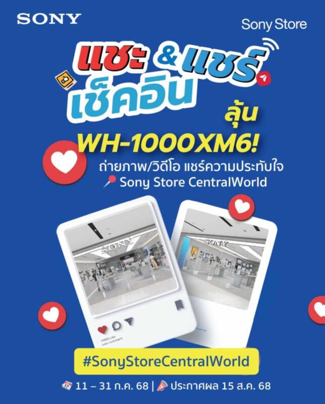 • แชะ แชร์ ลุ้น! หูฟังรุ่นใหม่ล่าสุด WH-1000XM6 มูลค่า 15,990 บาท