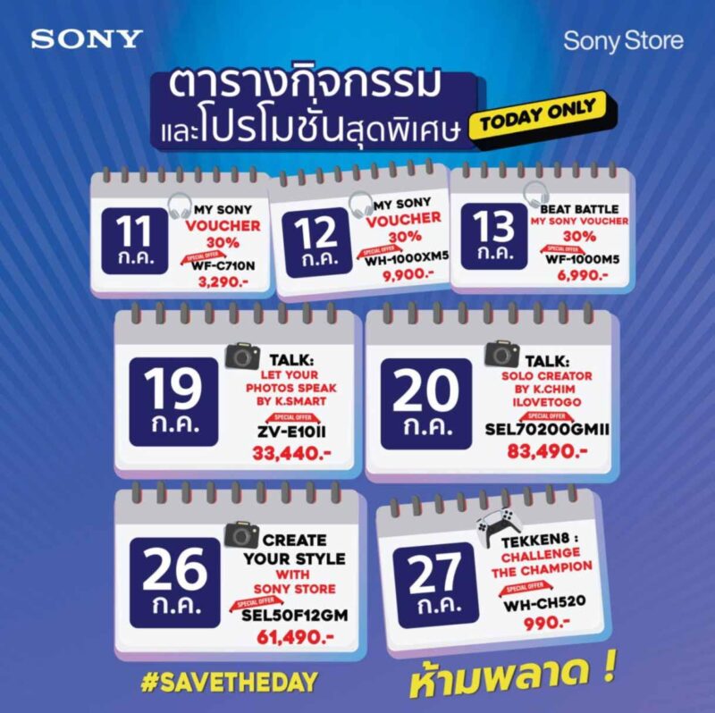 เนื่องในโอกาสเปิดสาขาใหม่ โซนี่ไทยได้จัดแคมเปญพิเศษ “Sony Store 7elebrate” ที่จะมีขึ้นตลอดเดือนกรกฎาคม 2568 เฉพาะที่สาขา โซนี่ สโตร์ เซ็นทรัลเวิลด์ เท่านั้น โดยมีไฮไลต์สำคัญที่ไม่ควรพลาด ดังนี้: