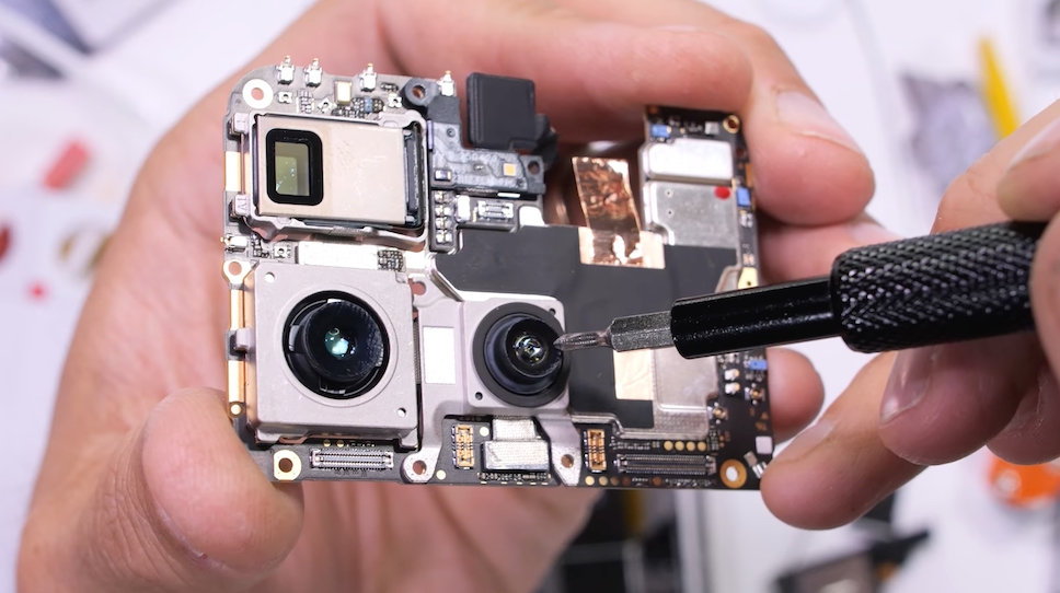 โมดูลกล้องของ Nothing Phone 3 เป็นชิ้นส่วนที่น่าสนใจ เนื่องจากถูกติดตั้งรวมกับแผงวงจร PCB ทั้งกล้องหลังและกล้องหน้า โดยแผง PCB ชิ้นเดียวกันยังเป็นที่อยู่ของชิปประมวลผลด้วย