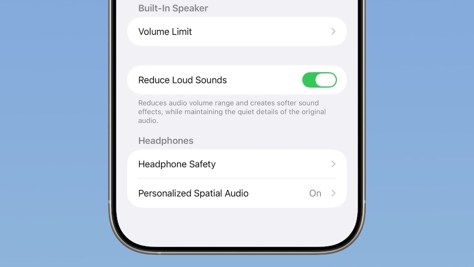 Sounds and Haptics ในแอป Settings มีการเปลี่ยนชื่อ Late Night Mode เป็น Reduce Loud Sounds พร้อมคำอธิบายว่า “ลดช่วงระดับเสียงและสร้างเอฟเฟกต์เสียงที่นุ่มนวลขึ้น ในขณะที่ยังคงรักษารายละเอียดของเสียงต้นฉบับไว้”