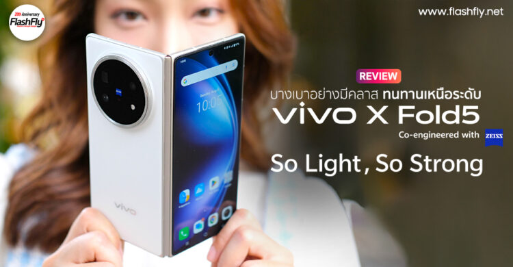 vivo เปิดตัวสมาร์ตโฟนจอพับรุ่นใหม่ vivo X Fold5 อย่างทางการในประเทศไทย โดยเป็นทายาทของ vivo X Fold3 ที่เปิดตัวเมื่อปีที่แล้ว ชูจุดเด่นที่ดีไซน์บางเบา แต่ทนทาน ป้องกันน้ำถึงระดับ IPX9+ ใช้ขุมพลังจาก Snapdragon 8 Gen 3 แบตเตอรี่ขนาดใหญ่ 6000mAh ดีไซน์บางเพียง 4.3 มิลลิเมตร ตอบโจทย์การถ่ายภาพด้วยกล้อง 50MP ZEISS Telephoto และมาพร้อม AI Smart Office ซึ่งน่าจะถูกใจคนทำงานแบบ Work from Anywhere อย่างแน่นอน โดยรุ่นนี้มาพร้อมสโลแกน “บางเบาอย่างมีคลาส ทนทานเหนือระดับ”