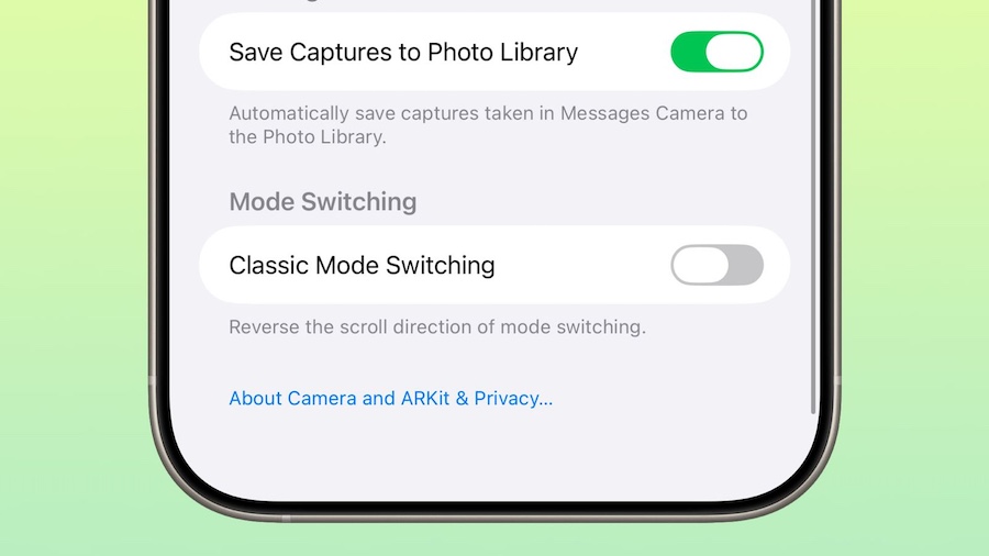 แอป Camera ได้รับปุ่มเปิด/ปิด เพื่อให้ผู้ใช้สามารถเปิด/ปิด Classic Mode ได้ ซึ่งเป็นการตั้งค่าที่กลับทิศทางการเลื่อนหน้าจอ เมื่อผู้ใช้สลับจากโหมดหนึ่งไปอีกโหมดหนึ่ง