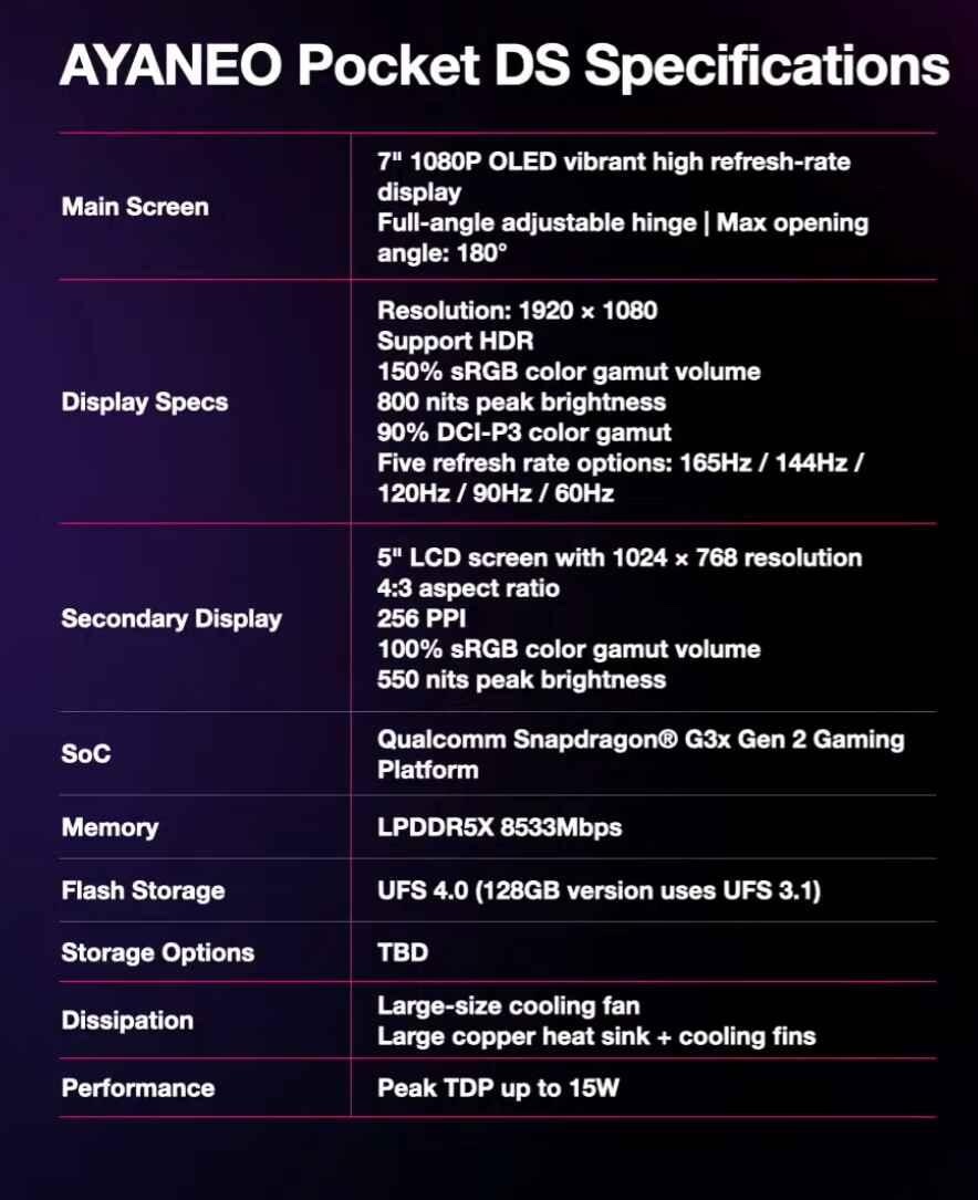 AYANEO เปิดตัว Pocket DS เครื่องเล่นเกมพกพาแบบจอคู่ รุ่นแรกของโลก ที่ทำงานบนระบบปฏิบัติการ Android (Android 13) ใช้ชิปประมวลผล Snapdragon G3x Gen 2 ของ Qualcomm พร้อมระบบระบายความร้อนด้วยพัดลมแบบเดียวกับ PC และมีความจุแบตเตอรี่ขนาดใหญ่ 8,000mAh