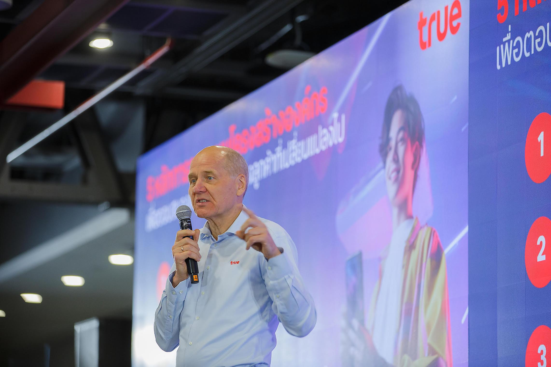 - มุ่งเน้นการเปลี่ยนผ่านสู่ดิจิทัล (Sharpened Focus on Digitalization) : ทรูวางกลยุทธ์มุ่งสู่ความเป็น Legacy Free โดยปลดล็อกจากข้อจำกัดของระบบเดิมเพื่อเปิดทางสู่ความคล่องตัวและการปรับตัวอย่างรวดเร็ว ในขณะเดียวกัน การสร้าง Digital & Omni-channel Customer Journey จะเป็นหัวใจสำคัญของการยกระดับประสบการณ์ลูกค้าให้ไร้รอยต่อในทุกช่องทาง ทั้งออนไลน์ ออฟไลน์ แอปพลิเคชัน และคอลเซ็นเตอร์ โดยมีข้อมูลลูกค้าเชื่อมต่อกันอย่างเป็นระบบ และสุดท้ายคือการขับเคลื่อนองค์กรด้วย Automation ที่ช่วยลดงานซ้ำซ้อน เพิ่มความแม่นยำ และปลดศักยภาพพนักงานให้ไปโฟกัสกับการสร้างคุณค่าสู่ลูกค้าอย่างแท้จริง