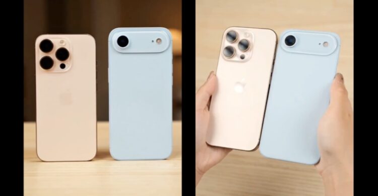 Majin Bu แหล่งข่าวที่เชื่อถือได้ แชร์คลิปวิดีโอที่เผยให้เห็นดีไซน์ในภาพรวมของ iPhone 17 Air เทียบเคียงกับ iPhone 16 Pro สี Desert Titanium ซึ่งแสดงให้เห็นว่า iPhone 17 Air มีความบางกว่าอย่างชัดเจน และมีขนาดตัวเครื่องใหญ่กว่าเล็กน้อย