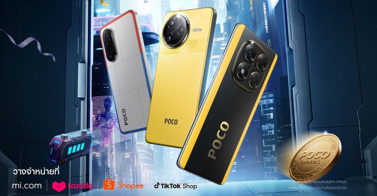 POCO Carnival 2025 ตอกย้ำพันธกิจของ POCO ในการมอบเทคโนโลยีประสิทธิภาพสูงในราคาที่คุ้มค่าจึงเป็นการเฉลิมฉลองความมุ่งมั่นของแบรนด์ในการทำให้นวัตกรรมระดับเรือธงนั้นเข้าถึงได้ง่ายมากยิ่งขึ้น ทั้งนี้ตลอดระยะเวลาของแคมเปญคุณจะได้รับโปรโมชั่นสุดพิเศษมากมายทั้งบน mi.com และช่องทางออนไลน์ Lazada, Shopee และ TikTok Shop โดยผลิตภัณฑ์จะประกอบไปด้วย