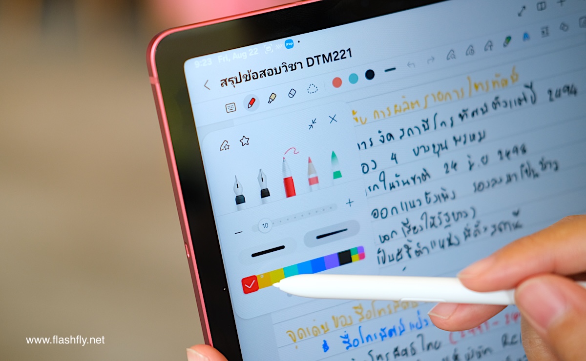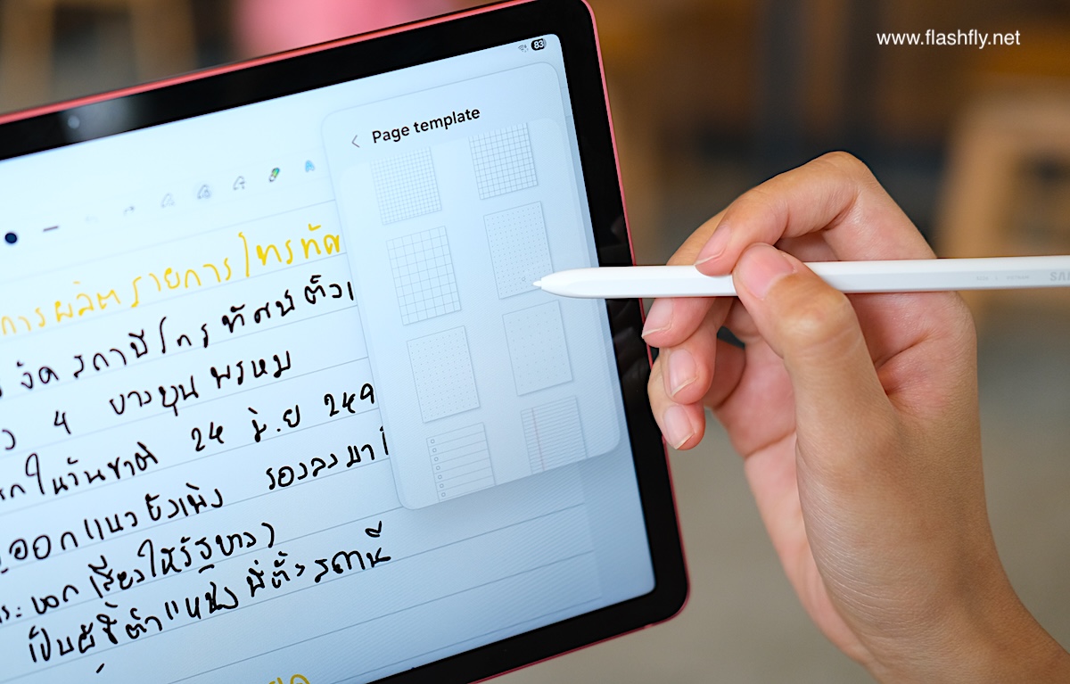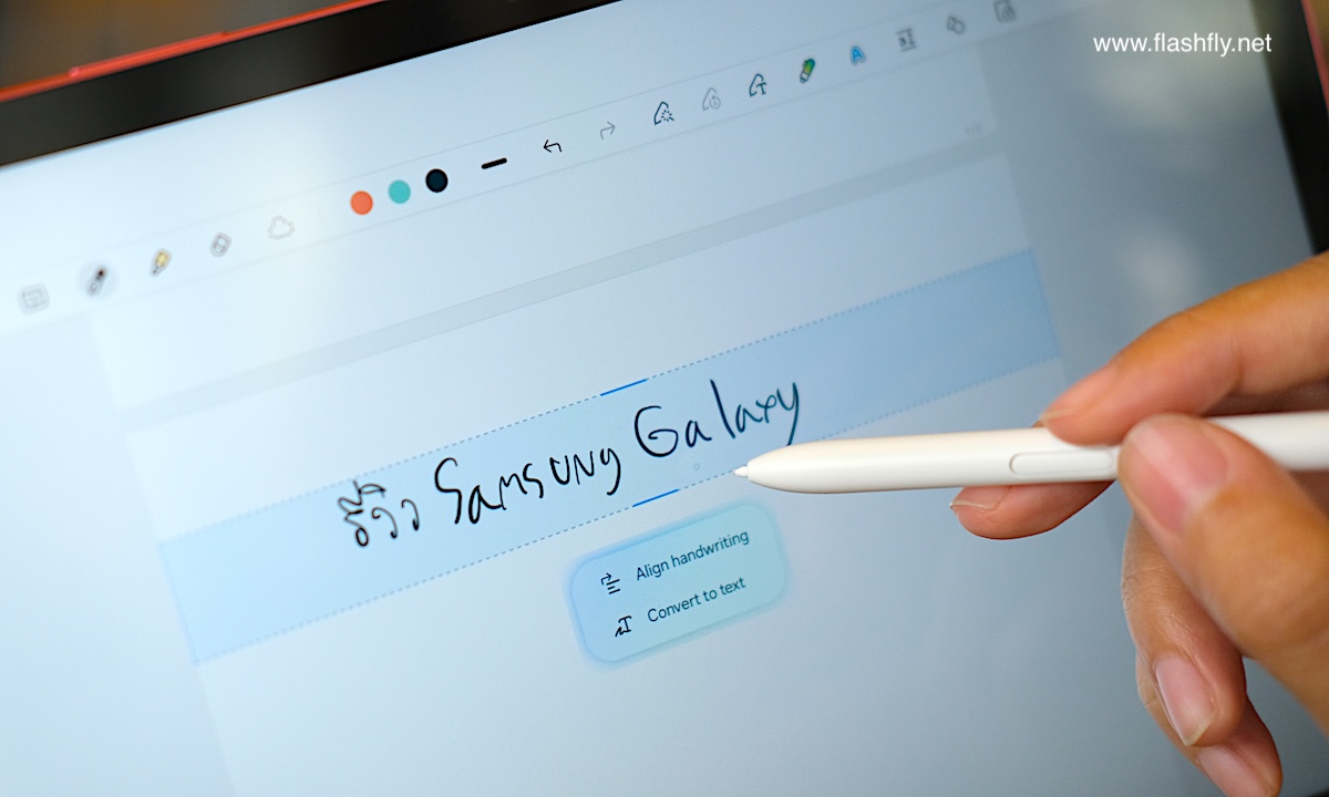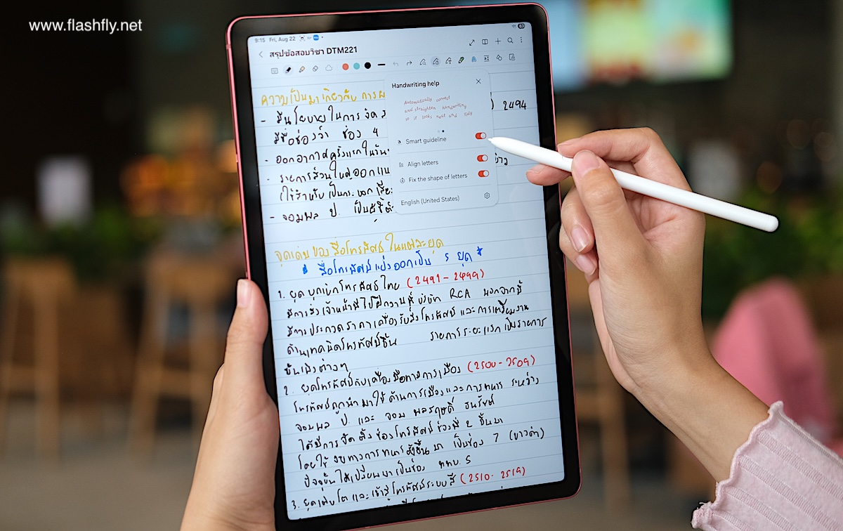 สำหรับใครที่ลายมือไม่เรียบร้อย Samsung Notes ก็มีฟีเจอร์ Handwriting Assist ช่วยจัดระเบียบลายมือที่เขียนด้วย S Pen ให้สวยงามอ่านง่าย เหมาะสำหรับสถานการณ์ที่ต้องรีบจดโน้ตอย่างเร่งด่วน หรือผู้ใช้งานที่มีปัญหาสายตาเอียงก็สบายใจได้เลย เพราะฟีเจอร์ Handwriting Assis สามารถปรับข้อความตรงบรรทัดได้