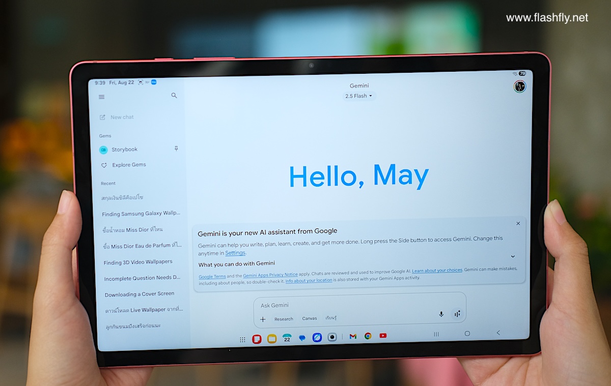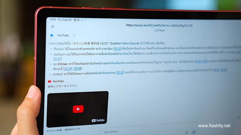 Samsung Galaxy Tab S10 Lite ยังมาพร้อม Gemini ผู้ช่วย AI ของ Google สามารถช่วยงานได้หลากหลาย ไม่ว่าจะช่วยหาข้อมูลที่ต้องการ แปลภาษา แนะนำไอเดียใหม่ๆ หรือแม้แต่สรุปรายละเอียดจากวิดีโอบน YouTube ก็ได้เช่นกัน ไม่ต้องเสียเวลาดูวิดีโอทั้งหมด