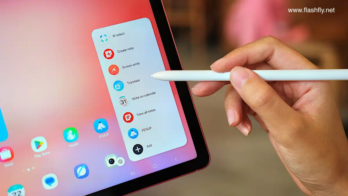 S Pen ที่แถมมากับ Galaxy Tab S10 Lite ยังรองรับการใช้งานร่วมกับ AI เพียงกดปุ่มที่ปากกา และสนับสนุน Air Command เรียกฟีเจอร์ต่างๆ เช่น S Pen Translate (จ่อเพื่อแปลภาษา), Smart Select (ครอปเฉพาะจุด), S Pen to Text (เขียนหาข้อมูลด้วยลายมือ ไม่ต้องใช้คีย์บอร์ด)