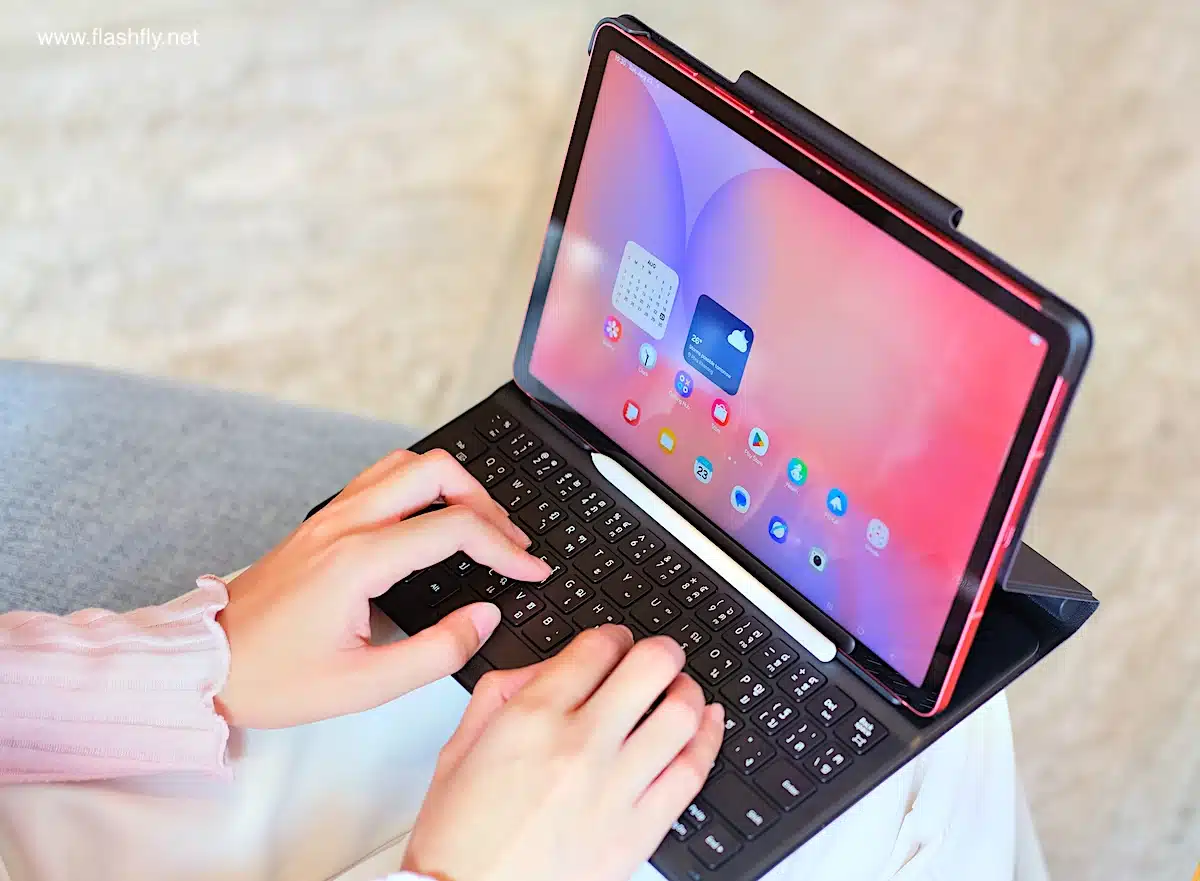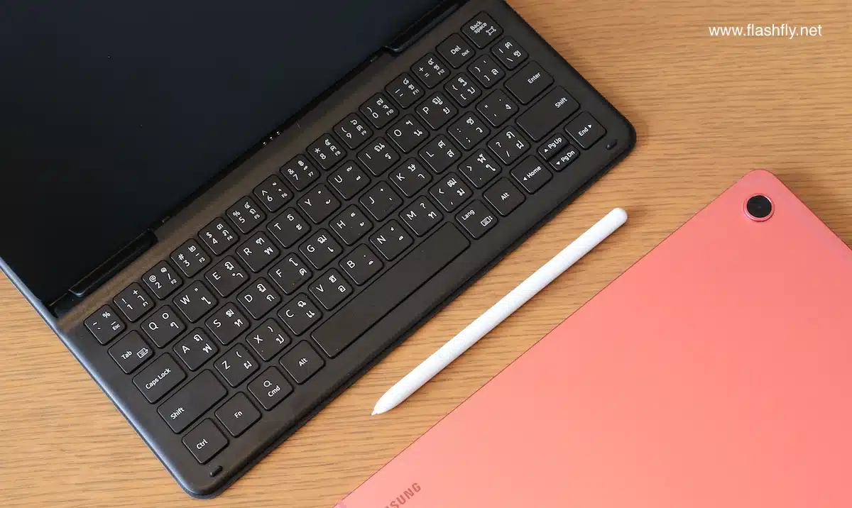 ขอบด้านล่างมี Poco Pin และยังมี Bluetooth Keyboard Cover ซึ่งแถมมาให้ด้วยไม่ต้องหาซื้อแยกต่างหาก รวมถึง S Pen ก็แถมมาให้เช่นกัน พร้อมทำงานทันทีตั้งแต่แกะกล่องไม่ต้องชาร์จ