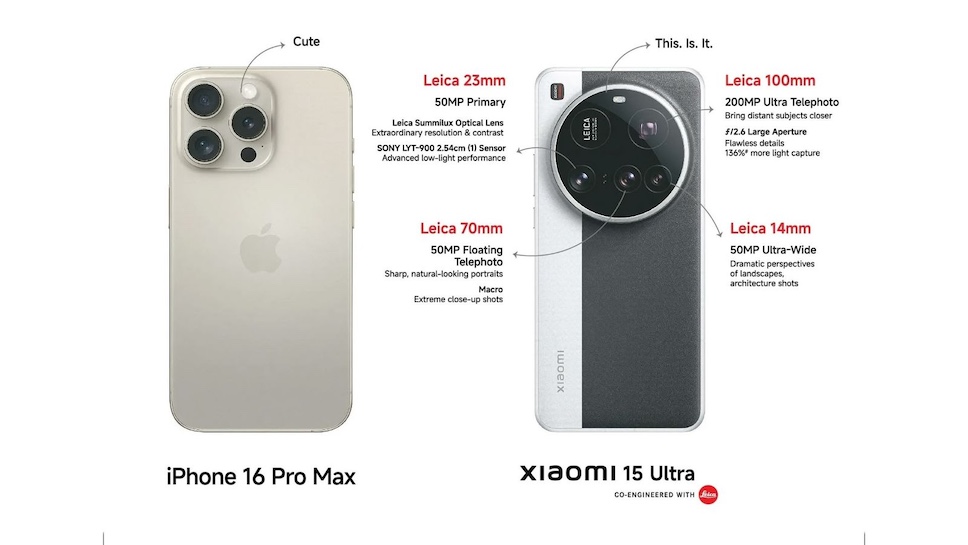 ย้อนกลับไปในเดือนมีนาคมที่ผ่านมา Xiaomi ยังลงโฆษณากับสื่อสิ่งพิมพ์อีกฉบับ โดยมีการบรรยายถึงกล้องหลัง 3 ตัว ของ iPhone 16 Pro Max ว่า ​​”น่ารัก” และตั้งคำถามว่า มันดีที่สุดจริง ๆ หรือไม่? พร้อมกับยกย่องสเปกกล้องที่สูงกว่าและราคาที่เข้าถึงได้ของ Xiaomi 15 Ultra อีกทั้งยังทำแคมเปญโฆษณาที่คล้ายคลึงกันเพื่อเปรียบเทียบกับ Samsung