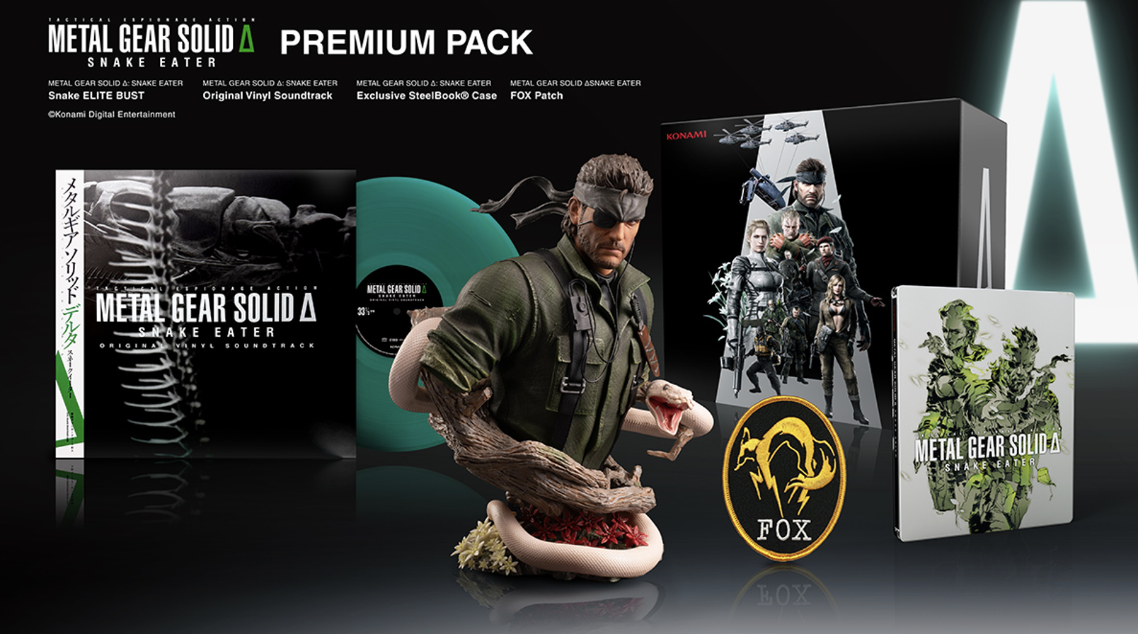 สำหรับผู้ที่อยากเอาชีวิตรอดอย่างสุดชีวิต METAL GEAR SOLID Δ: SNAKE EATER Premium Pack มาพร้อมบรรจุภัณฑ์ที่กำหนดเองได้และประกอบด้วย: