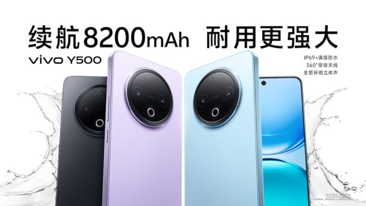 vivo เปิดตัวสมาชิกใหม่ของ Y-series ในประเทศจีน vivo Y500 โดยชูจุดเด่นที่ความจุแบตเตอรี่ขนาดใหญ่ 8,200mAh ใช้งานนานต่อเนื่อง 18.4 ชั่วโมง และยังรองรับชาร์จเร็วแบบใช้สาย 90W พร้อมระบบป้องกันการชาร์จ ครอบคลุมตั้งแต่แรงดันไฟฟ้า กระแสไฟสูง และอุณหภูมิตัวเครื่อง