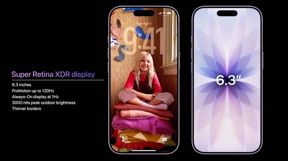 iPhone 17 มาพร้อมหน้าจอใหญ่ขึ้น 6.3 นิ้ว ให้ความสว่างสูงขึ้น รองรับ ProMotion ที่มีอัตราการรีเฟรชแบบปรับได้สูงสุด 120Hz รองรับโหมด Always-on mี่สามารถปรับค่าได้ต่ำสุดที่ 1Hz ผ่านการเคลือบป้องกันแสงสะท้อน 7 ชั้น ช่วยลดแสงสะท้อนและสิ่งรบกวน ทำให้มองเห็นได้ชัดเจนยิ่งขึ้นในสภาพแสงจ้า และได้รับการปกป้องด้วย Ceramic Shield 2 ทนทานต่อรอยขีดข่วนได้ดีขึ้นถึง 3 เท่า
