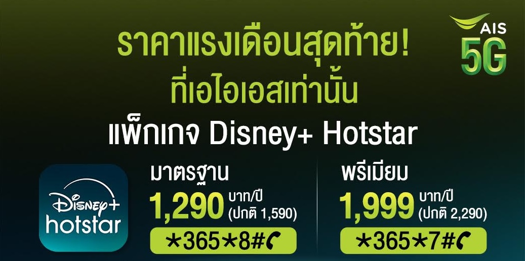 ลูกค้าสมัครแพ็กเกจรายปี Disney+ Hotstar ในราคาสุดคุ้ม ถึงวันที่ 30 กันยายน 2568 เท่านั้น ดื่มด่ำความบันเทิงระดับโลกแบบจัดเต็ม กับคอนเทนต์คุณภาพจาก Disney, Pixar, Marvel, Star Wars, National Geographic และอีกมากมาย ทั้งภาพยนตร์ ซีรีส์ และสารคดีสุดฮิต บนเครือข่ายที่ดีที่สุด AIS 5G ตอกย้ำความเป็นผู้นำด้านความบันเทิงที่ครบครันที่สุดในประเทศไทย