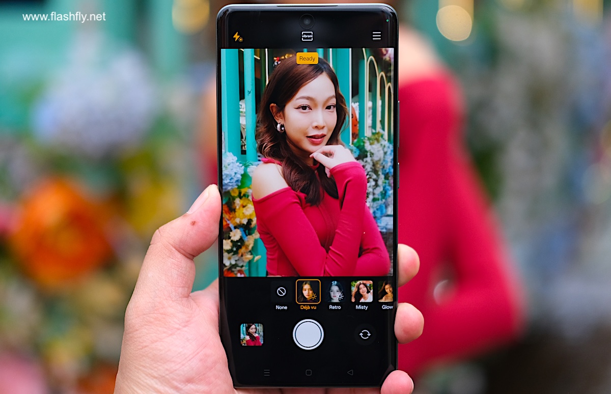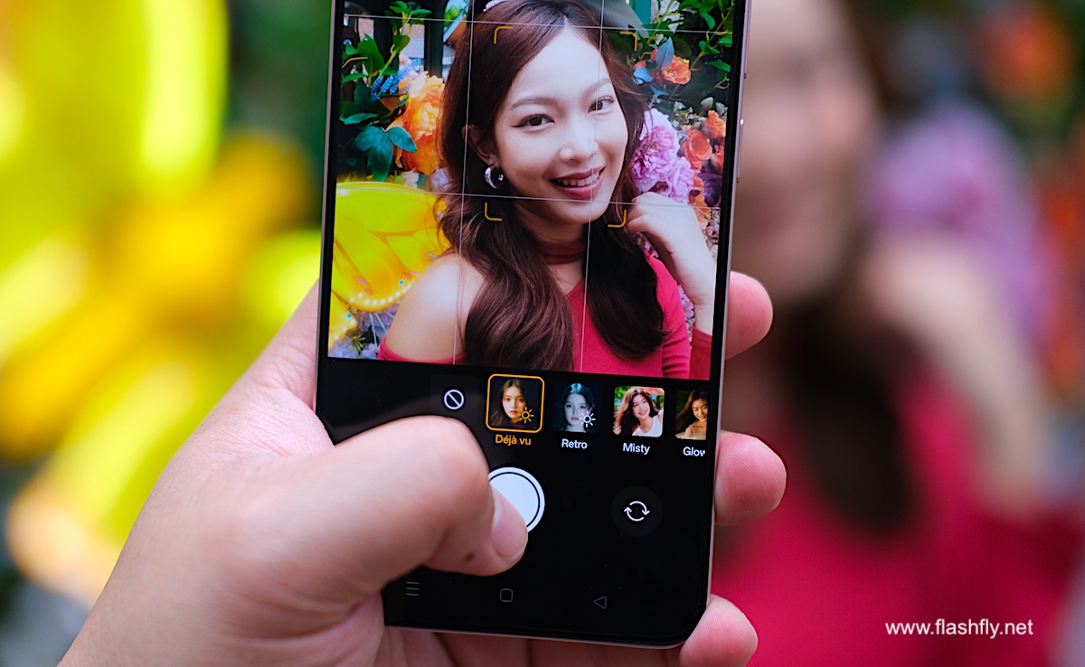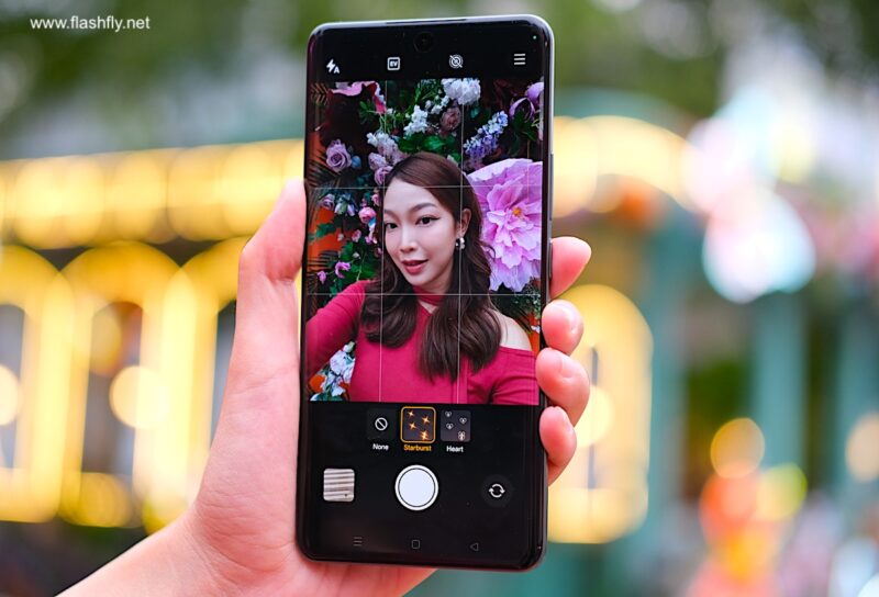 โหมด Photo ของกล้องหน้ามีฟีเจอร์ Light Effect ให้เลือก 2 แบบ Starburst และ Heart เช่นเดียวกับกล้องหลัง รวมถึงฟีเจอร์ Soft Light ที่ประกอบด้วยเอฟเฟกต์ Deja vu, Retro, Misty, Glowy และ Dreamy