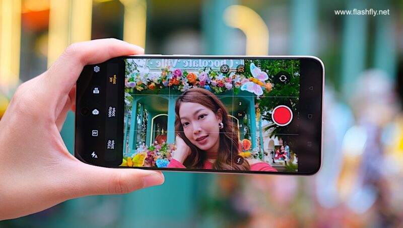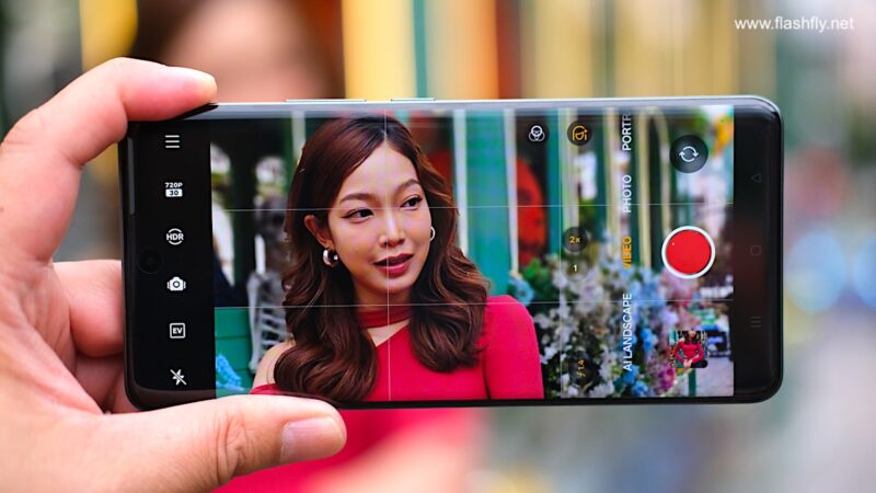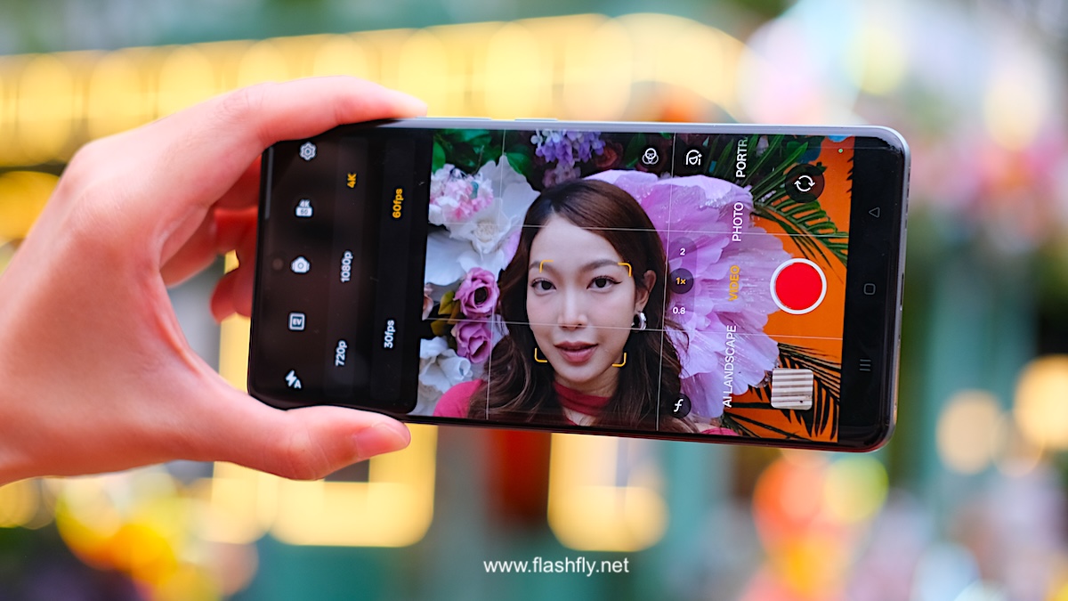 โหมด Video รองรับการซูมที่ระยะ 1x, 2x จนสูงสุด 10x สามารถถ่ายวิดีโอได้สูงสุด 4K ที่อัตรา 60 เฟรมต่อวินาที หรือ Full HD 1080p ที่อัตรา 60 เฟรมต่อวินาที แถบเครื่องมือด้านบนมีฟีเจอร์ปรับค่าชดเชยแสง EV แบบโหมด Photo ถัดมาเป็นฟีเจอร์ Ultra Stedy ซึ่งเป็นการเปิดระบบป้องกันภาพสั่นไหว และฟีเจอร์ AI Highlight Video (ไอคอน AI) ช่วยจัดการแสงตามสภาวะแสงระหว่างการบันทึกวิดีโอ ไม่ว่าจะมีแสงมากหรือแสงน้อย AI ก็ช่วยปรับแสงให้ออกมาสมบูรณ์แบบโดยอัตโนมัติ