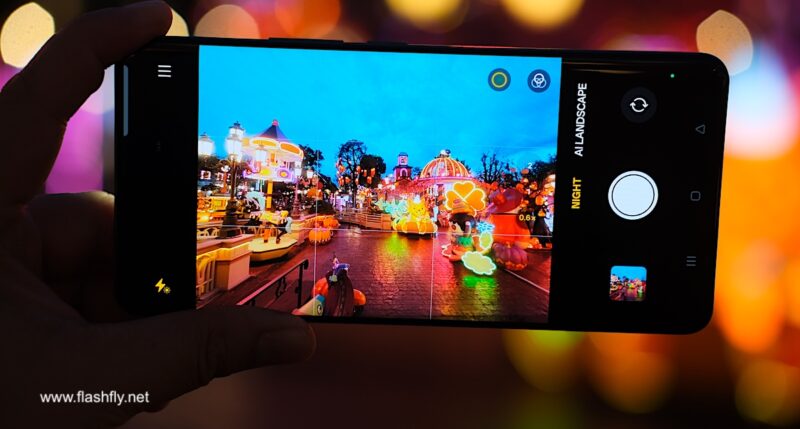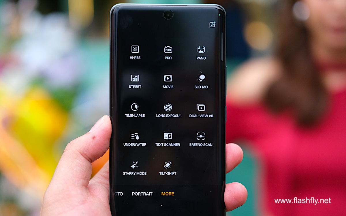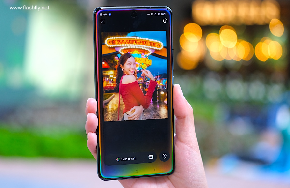โหมด Night สามารถซูมได้ในช่วง 0.6x, 1x, 2x จนสูงสุด 10x มีฟีเจอร์ Soft Light ที่มาพร้อมเอฟเฟกต์ Deja vu, Retro, Misty, Glowy และ Dreamy และ Filters ที่ช่วยทำให้ภาพถ่ายในเวลากลางคืนมีความโดดเด่นยิ่งขึ้น เช่น Gloden, Warm & Cool, Pink & Teal และ Night City