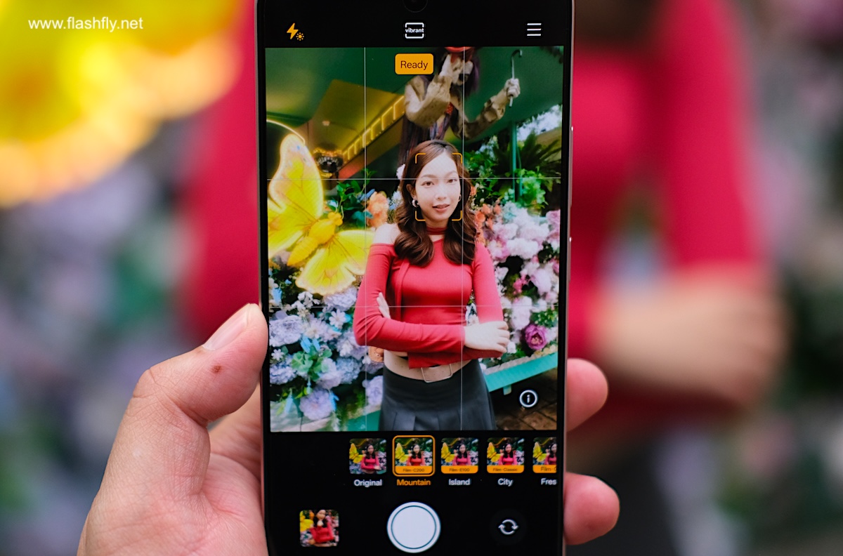 Filters ในโหมด Photo ได้รับการอัปเกรดให้ถ่ายภาพสถานที่ท่องเที่ยวได้สวยงามยิ่งขึ้นด้วย Filters ใหม่ๆ เช่น Mountain, Island, City รวมถึง Filters ที่มีอยู่ก่อนแล้วอย่าง Fresh, Emerald, Clear, Tone of Light, Vivid, Radian ส่วนไอคอนรูปใบหน้าเป็นฟีเจอร์ Retouch สำหรับปรับใบหน้าให้ดูดีขึ้น