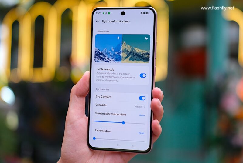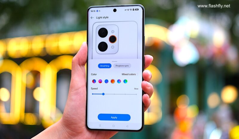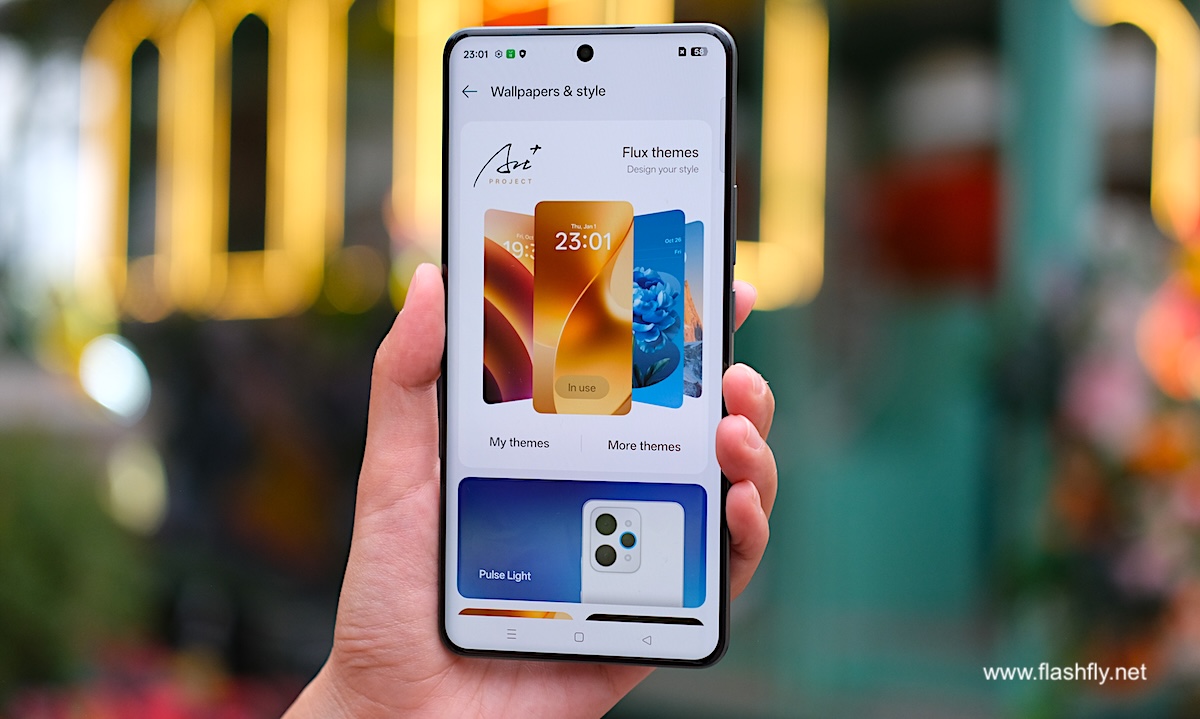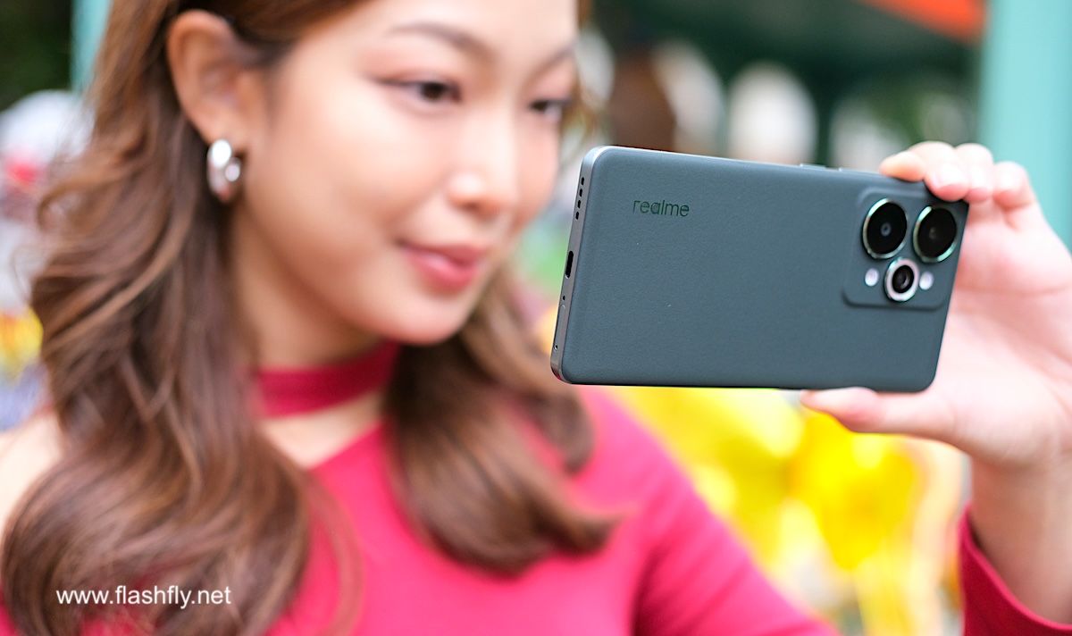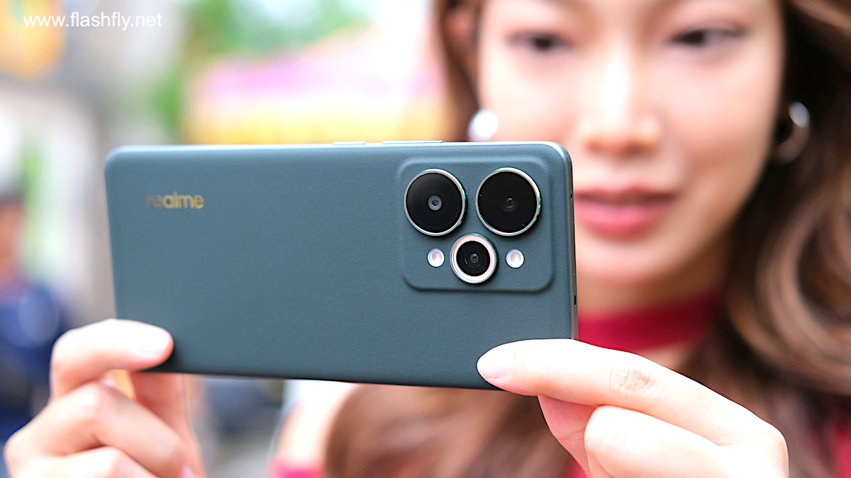 ดีไซน์ฝาหลังของ realme 15 Pro 5G จึงเป็นการผสานเทคโนโลยีเข้ากับแฟชันชั้นสูงของฝรั่งเศส เปรียบเสมือนนำตัวอย่างผ้าโอตกูตูร์มาอยู่บนฝาหลัง โดยมีให้เลือก 2 สี ได้แก่ Flowing Silver และ Velvet Green ซึ่งทีมงาน @flashfly ได้รับสี Velvet Green มารีวิว เป็นโทนสีเขียวเข้ม
