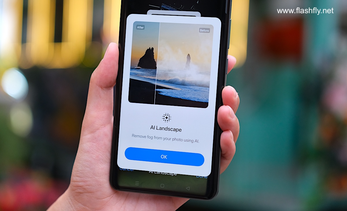 โหมด AI Landscape พัฒนาขึ้นมาเพื่อยกระดับการถ่ายภาพวิวทิวทัศน์ เช่น ภาพอาคารต่างๆ ที่ถ่ายจากมุมสูง ซึ่งปกติจะพบกับอุปสรรคมากมาย ไม่ว่าจะเป็น สภาพอากาศมืดครึ้ม มีหมอกหนา หรืออยู่ในสภาวะแสงที่ซับซ้อน ต้องถ่ายย้อนแสง เป็นต้น แต่ปัญหาเหล่านี้จะหมดไป เนื่องจากโหมด AI Landscape จะช่วยเพิ่มความคมชัดและความโปร่งใสของภาพถ่าย รวมถึงแก้ไของค์ประกอบโดยรวมของภาพ ทำให้ได้ภาพวิวทิวทัศน์ที่สวยงามสมบูรณ์แบบมากที่สุด