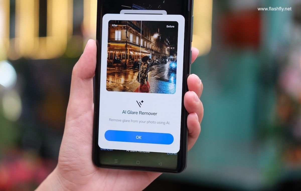 - AI Glare Removal สามารถลบแสงสะท้อนในภาพถ่ายได้ง่ายๆ ด้วยการคลิกเพียงครั้งเดียว ช่วยทำลายข้อจำกัดทางกายภาพของเลนส์และแหล่งกำเนิดแสง