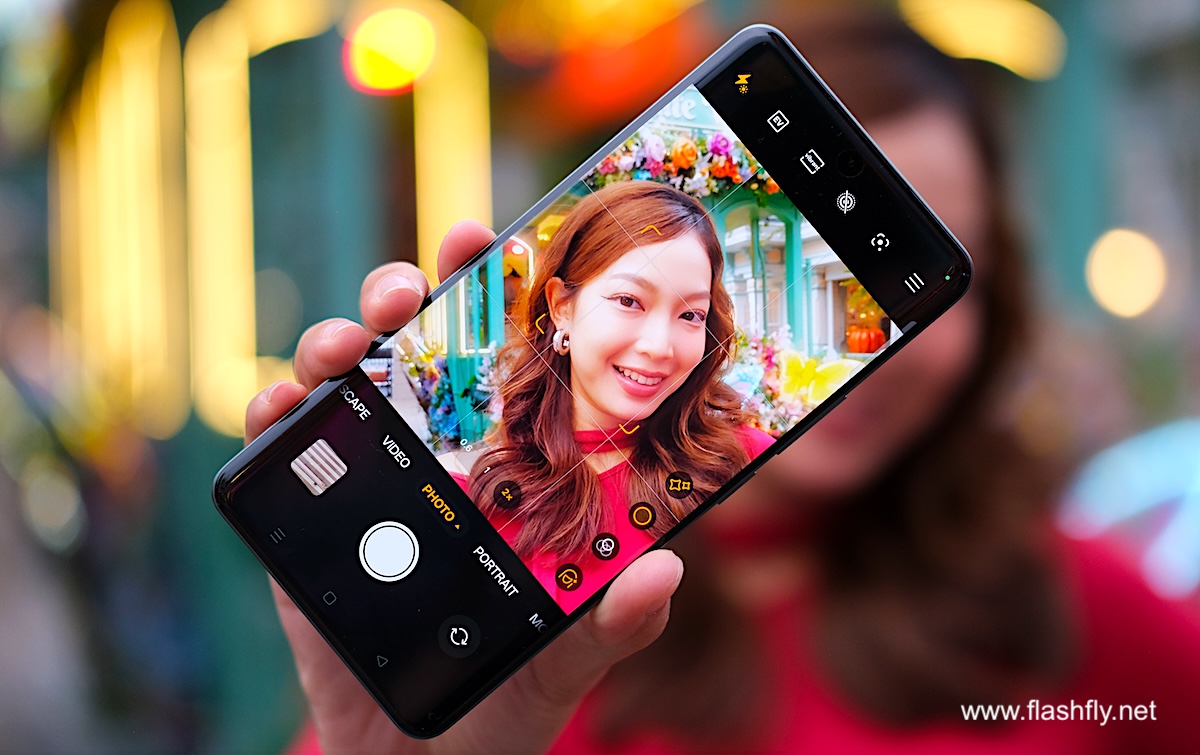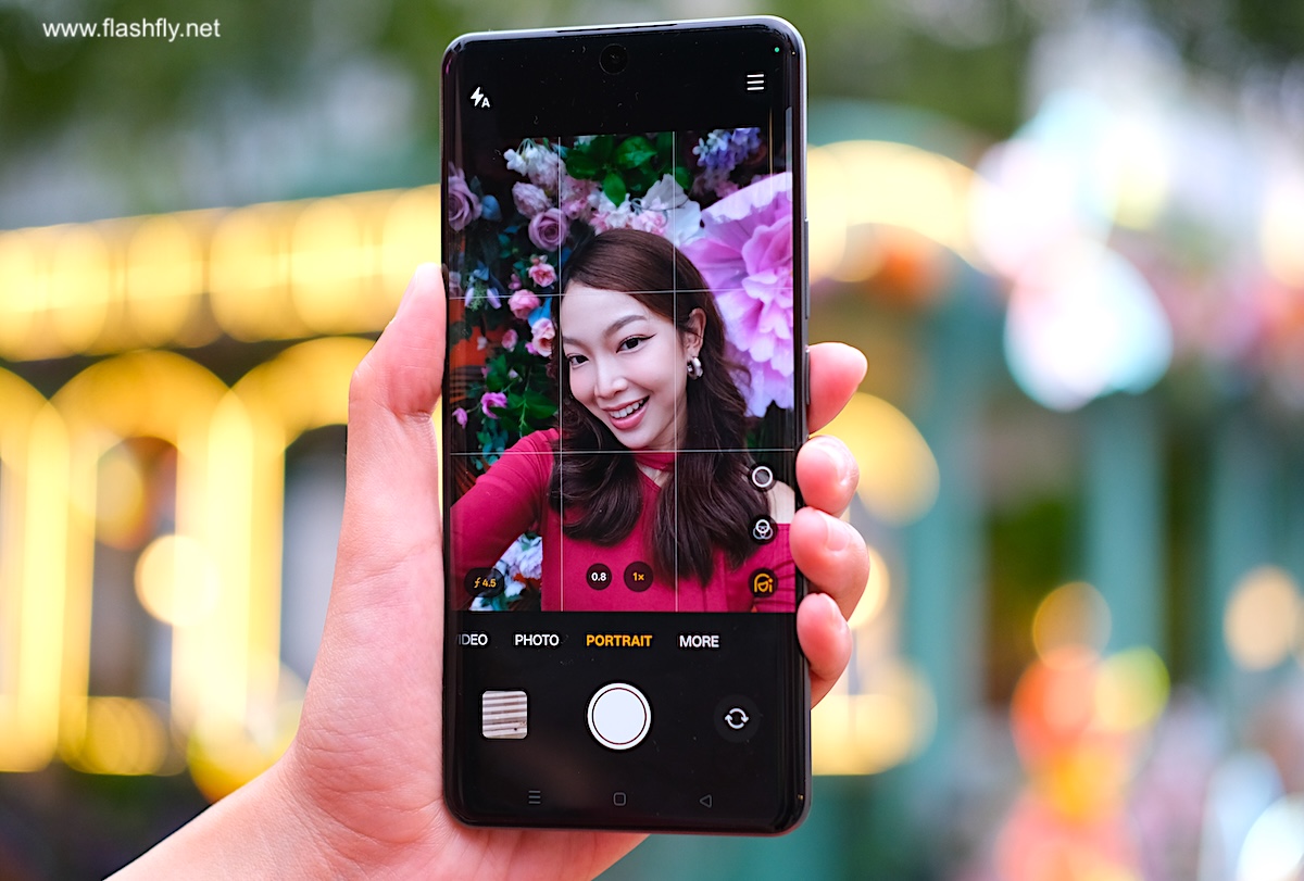 โหมด Portrait ของกล้องหน้า รองรับการซูมที่ระยะ 0.8x และ 1x สามารถปรับค่า F เพื่อละลายฉากหลังได้ มีฟีเจอร์ Soft light, Filters และ Retouch เหมือนโหมด Photo โดยฟีเจอร์ Retouch สามารถปรับแต่งความงามบนใบหน้าได้ละเอียดกว่ากล้องหลัง